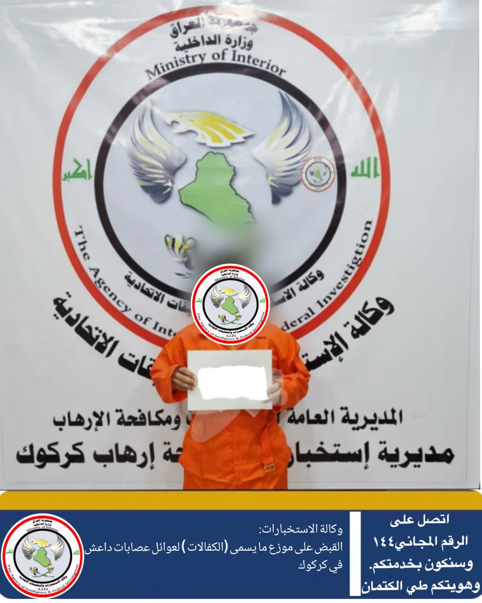 وكالة الاستخبارات: القبض على موزع ما يسمى (الكفالات) لعوائل داعش في كركوك