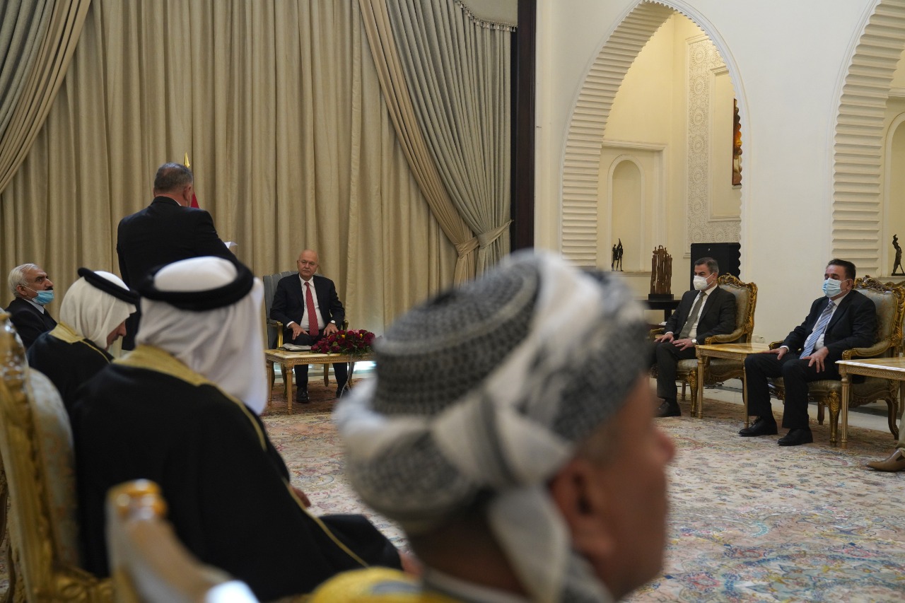 رئيس الجمهورية يستقبل شيوخ ووجهاء طوزخورماتو ويؤكد ضرورة حماية التعايش السلمي