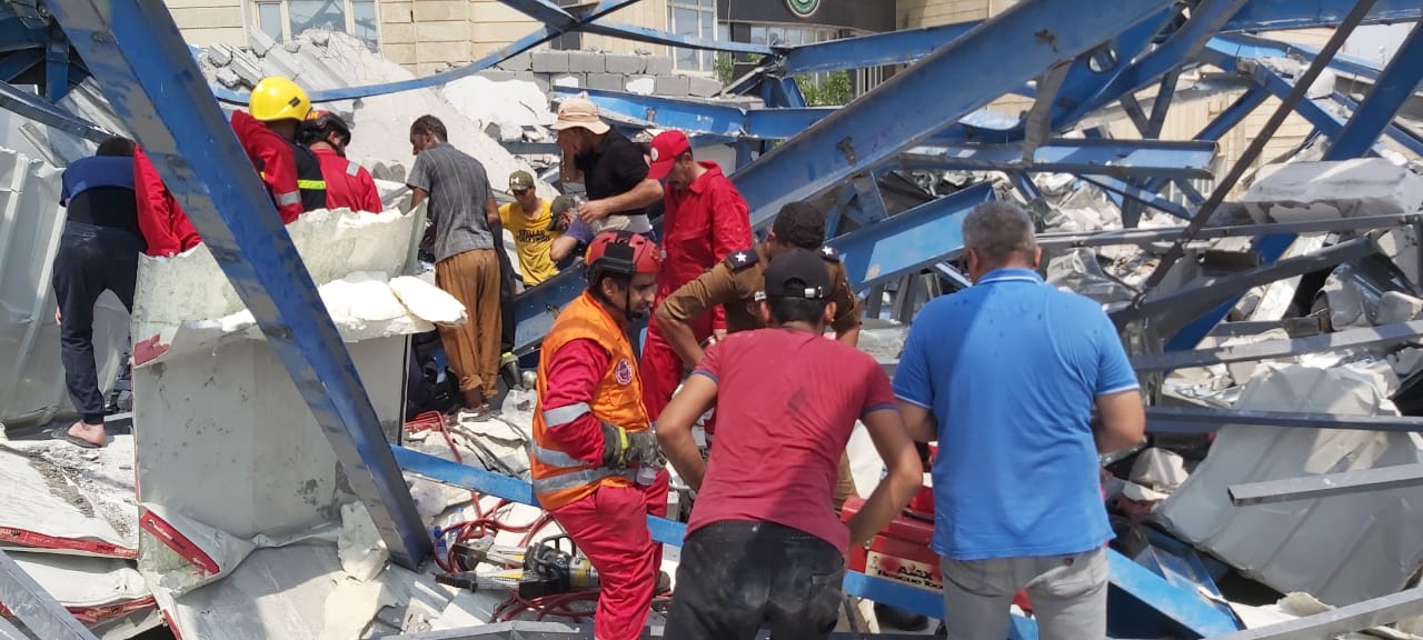 بالصور .. الدفاع المدني ينقذ 7 عمال وينتشل 3 جثث نتيجة انهيار مرفق رياضي في البصرة
