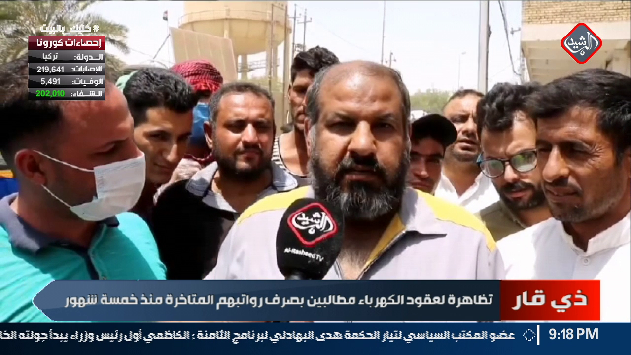 تظاهرة لعقود الكهرباء مطالبين بصرف رواتبهم المتاخرة منذ خمسة شهور
