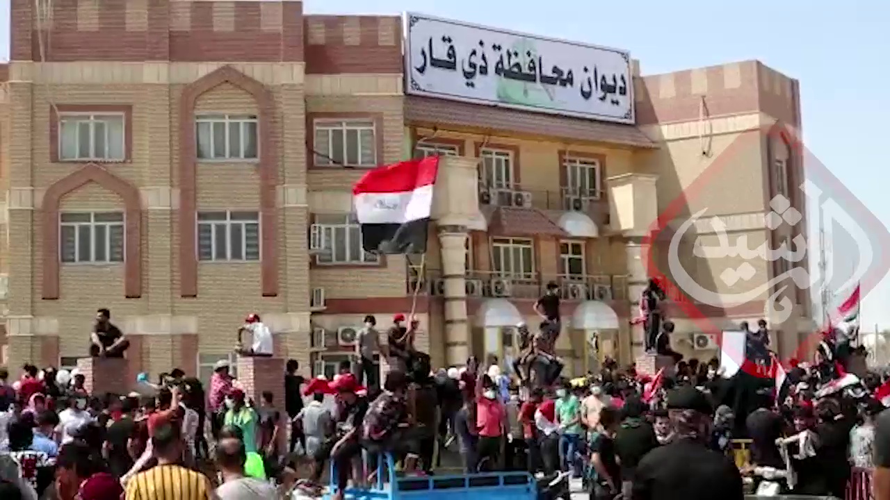 المئات يتظاهرون امام مبنى محافظة ذي قار للمطالبة باقالة المدراء الفاسدين