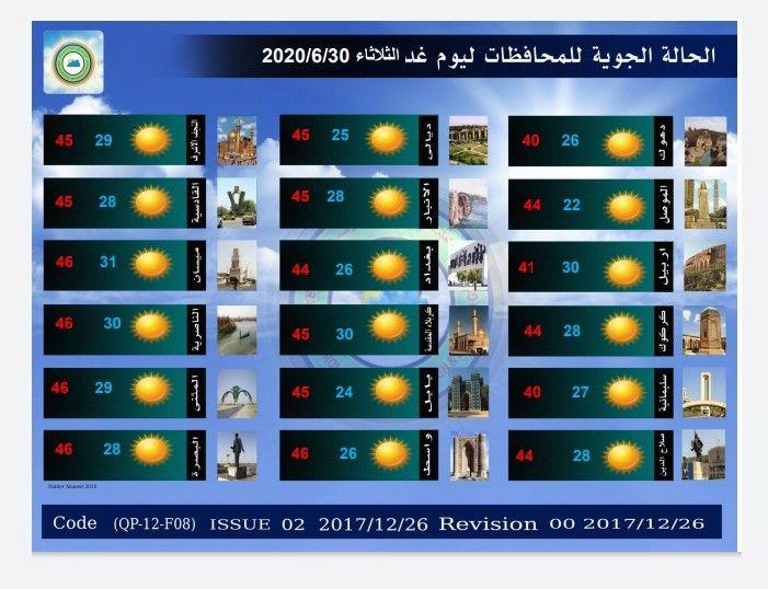 الحالة الجوية ودرجات الحرارة في العراق لليوم الاثنين والايام المقبلة