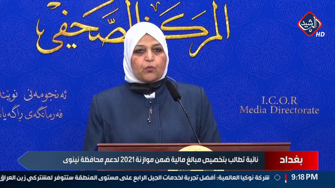 نائبة تطالب بتخصيص مبالغ المالية ضمن موازنة 2021 لدعم محافظة نينوى
