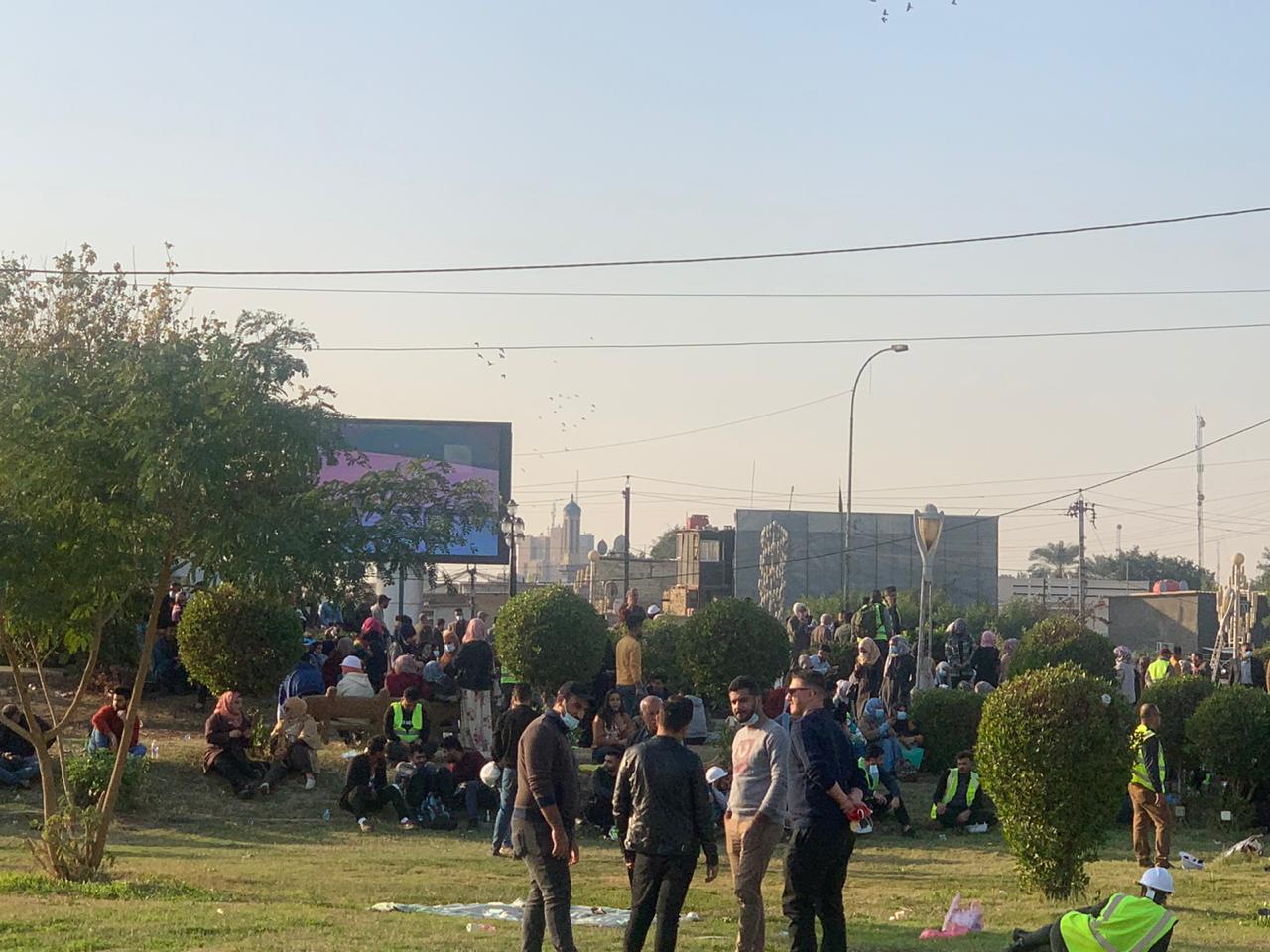 حملة الشهادات العليا يتظاهرون في ساحة جسر الطابقين وسط بغداد