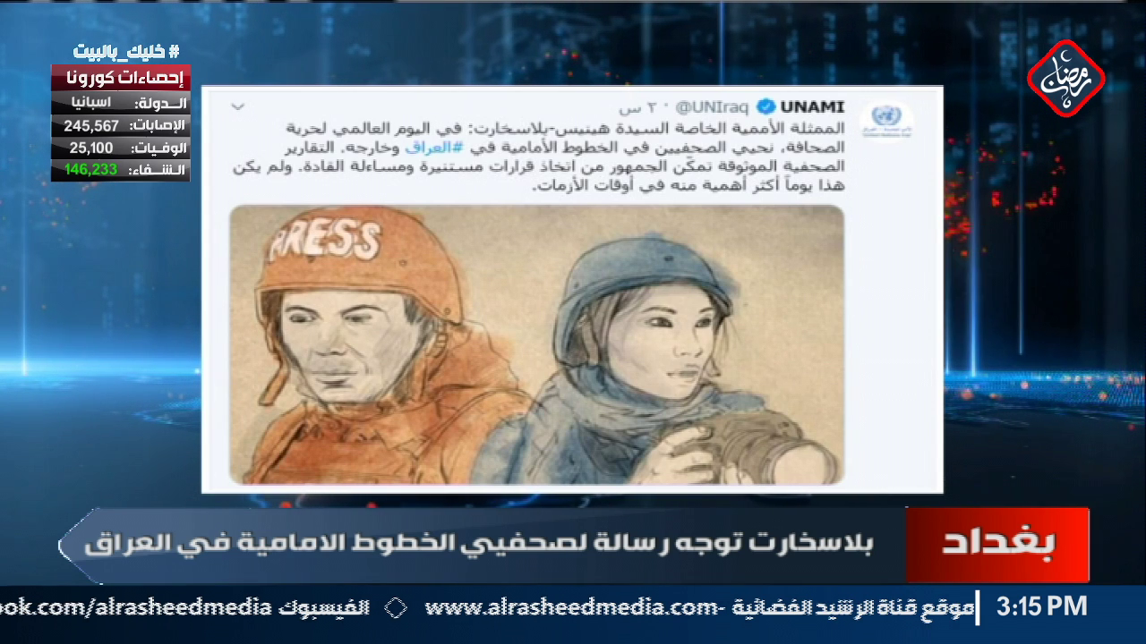 بلاسخارت توجه رسالة لصحفيي الخطوط الامامية في العراق