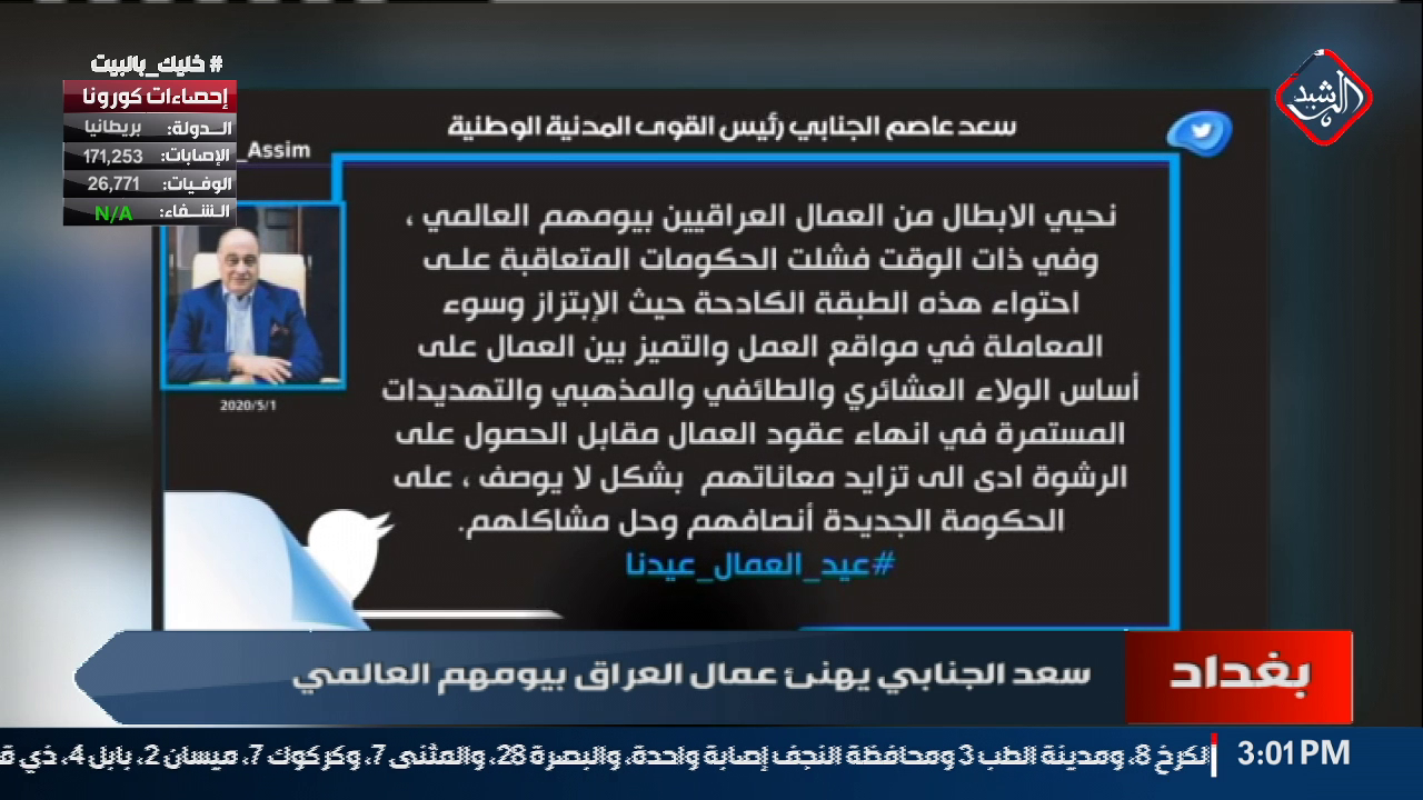 سعد الجنابي يهنئ عمال العراق بيومهم العالمي