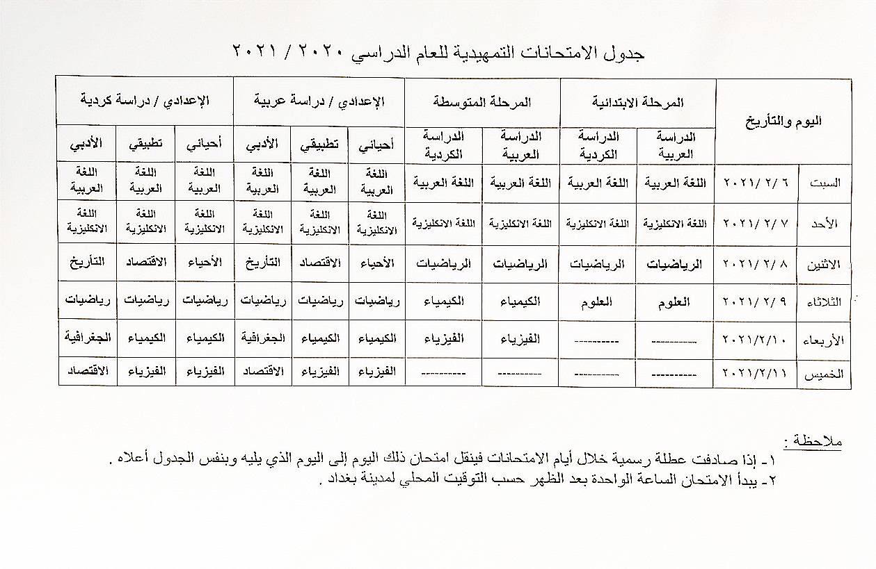 محلياتالتربية تنشر الجدول الخاص بالامتحانات التمهيدية للعام الدراسي 2020 – 2021 قبل 5 سنوات 3 مشاهدات شارك قد يهمك أيضا عربي ودولي الولايات المتحدة تهدد سوريا بإعادة فرض العقوبات في حال توسيع العمليات ضد “قسد” قبل 3 ثواني محليات طقس العراق.. أمطار وانخفاض درجات الحرارة خلال الأيام المقبلة قبل 24 دقيقة 5 مشاهدات أقتصاد وزير الطاقة الأمريكي: سنبيع برميل النفط الفنزويلي بـ45 دولارا قبل 27 دقيقة 5 مشاهدات عربي ودولي قائد قسد: قررنا سحب قواتنا من مناطق التماس الحالية شرقي حلب صباح الغد قبل 9 ساعات 10 مشاهدات عربي ودولي منظمة إيرانية: 20 ألف معتقل و3428 قتيلاً منذ بدء الاحتجاجات قبل 10 ساعات 9 مشاهدات