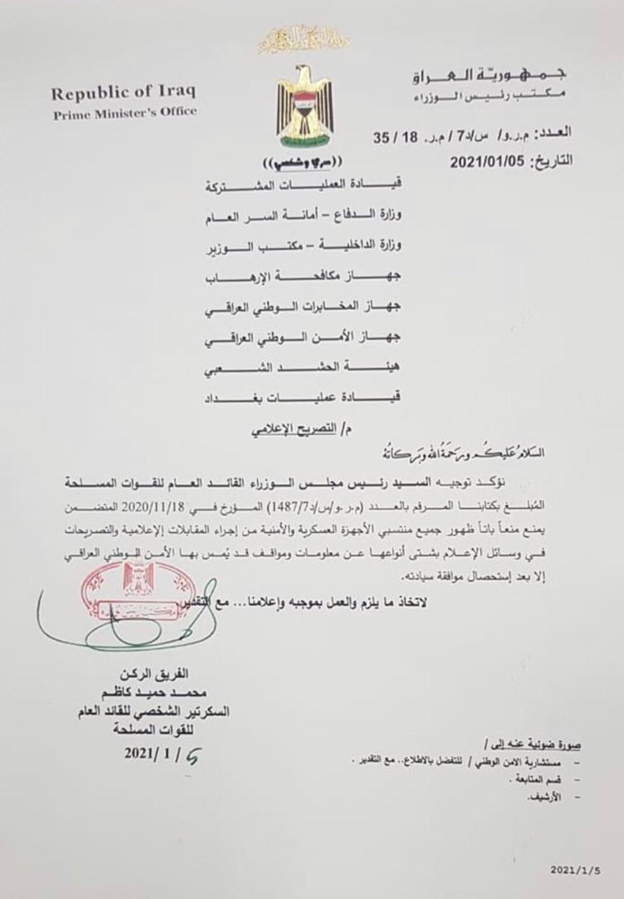 الاخبار العاجلةبالوثيقة .. الكاظمي يأمر بمنع منتسبي الاجهزة الامنية من الظهور الاعلامي دون موافقته قبل 5 سنوات 4 مشاهدات شارك قد يهمك أيضا أمن زاولت المهنة 6 سنوات.. اعتقال متهمة انتحلت صفة طبيبة نسائية وتجميل في بغداد قبل 13 دقيقة 2 مشاهدات سياسة السليمانية.. اجتماعات بين الاتحاد والأحزاب الكردية لمناقشة تشكيل حكومة الإقليم قبل 29 دقيقة 3 مشاهدات عربي ودولي بعد انسحاب “قسد”.. الجيش السوري يعلن بسط سيطرته على “دير حافر” في ريف حلب قبل ساعة واحدة 8 مشاهدات محليات النزاهة تضبط ثلاثة متهمين وتُحبط محاولات الاستيلاء على 8 دوانم من أراضي الدولة في ميسان قبل ساعة واحدة 9 مشاهدات أقتصاد مرصد: العجز المالي تجاوز الـ(24) تريليون دينار وإيرادات الدولة لا تغطي الرواتب قبل ساعتين 5 مشاهدات