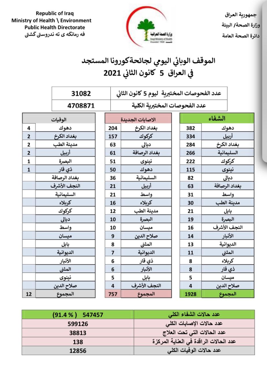 الاخبار العاجلةالصحة تعلن تسجيل 12 وفاة بكورونا و 1928 حالة شفاء من الفيروس قبل 5 سنوات 3 مشاهدات شارك قد يهمك أيضا عربي ودولي غزة.. قصف إسرائيلي متواصل ووفاة رضيعة جراء البرد القارس قبل دقيقتان أمن زاولت المهنة 6 سنوات.. اعتقال متهمة انتحلت صفة طبيبة نسائية وتجميل في بغداد قبل 27 دقيقة 4 مشاهدات سياسة السليمانية.. اجتماعات بين الاتحاد والأحزاب الكردية لمناقشة تشكيل حكومة الإقليم قبل 44 دقيقة 5 مشاهدات عربي ودولي بعد انسحاب “قسد”.. الجيش السوري يعلن بسط سيطرته على “دير حافر” في ريف حلب قبل ساعة واحدة 8 مشاهدات محليات النزاهة تضبط ثلاثة متهمين وتُحبط محاولات الاستيلاء على 8 دوانم من أراضي الدولة في ميسان قبل ساعتين 9 مشاهدات