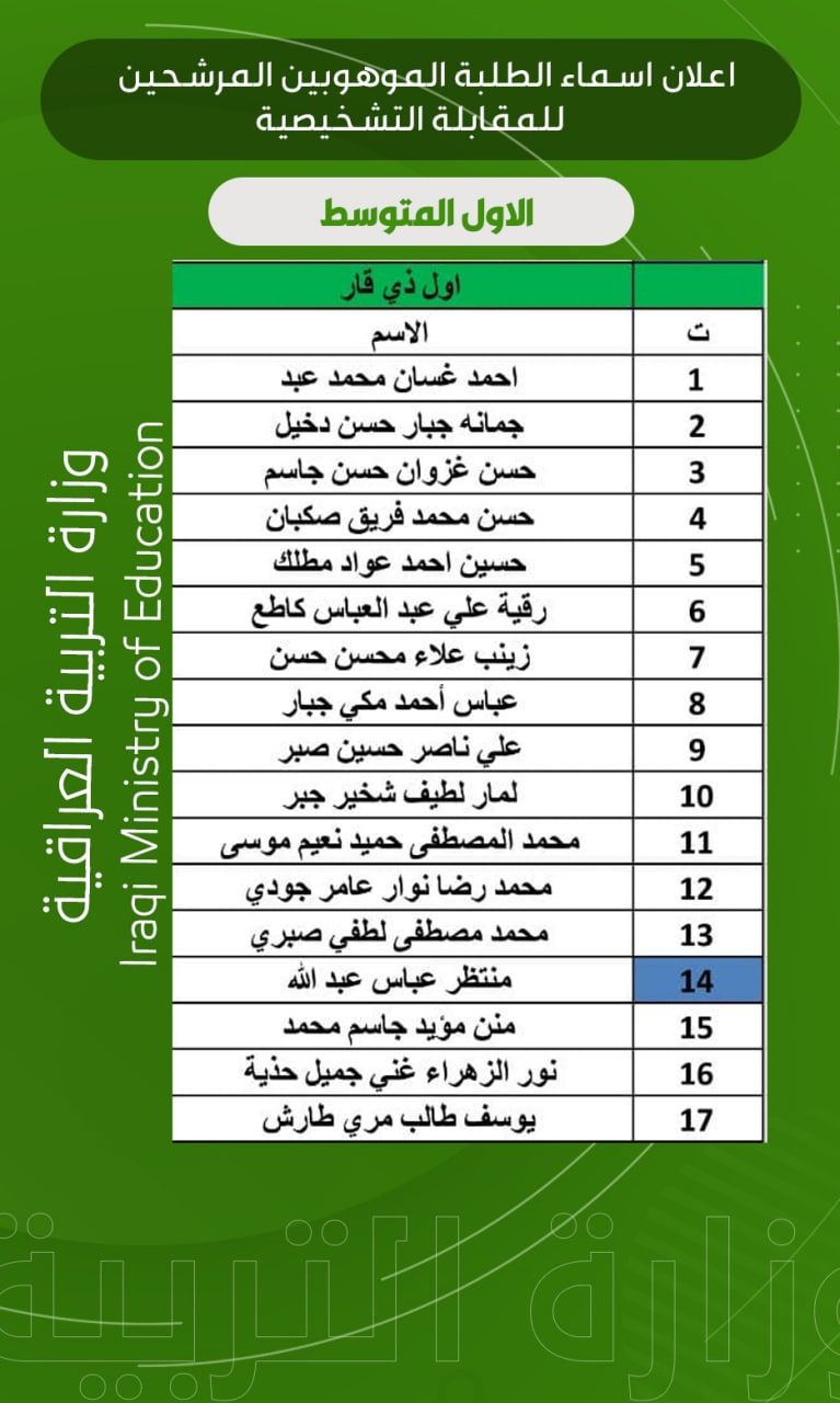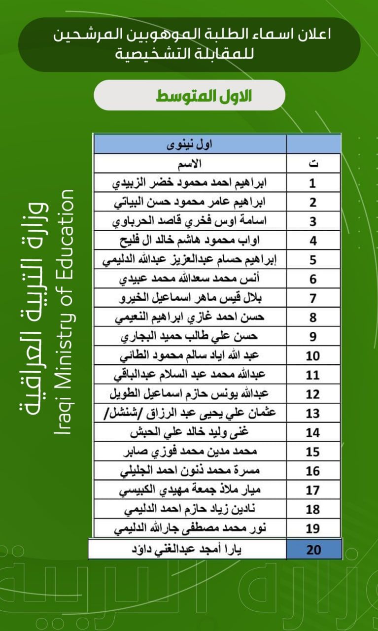 محلياتالتربية تُعلن أسماء الطلبة الذين اجتازوا اختبار المستوى الثاني لمدارس الموهوبين قبل 5 سنوات 11 مشاهدات شارك قد يهمك أيضا سياسة وزير الخارجية ونظيره الفرنسي يبحثان التوترات الاقليمية خاصة بين الولايات المتحدة وايران قبل 4 ساعات 9 مشاهدات عربي ودولي القيادة المركزية الامريكية تعلن مقتل قيادي في القاعدة بغارة جوية في شمال غرب سوريا قبل 4 ساعات 12 مشاهدات سياسة نيجيرفان بارزاني وباراك يبحثان التطورات في سوريا والعلاقة بين اقليم كردستان والولايات المتحدة قبل 4 ساعات 11 مشاهدات سياسة لقاء بارزاني وعبدي.. التأكيد على ضرورة ترسيخ السلام وإنهاء التوترات والعنف في سوريا قبل 5 ساعات 8 مشاهدات عربي ودولي نجل الشاه “رضا بهلوي” يحث ترامب على ضرب إيران ويدعو الشعب لاتخاذ اجراءات حاسمة قبل 5 ساعات 15 مشاهدات