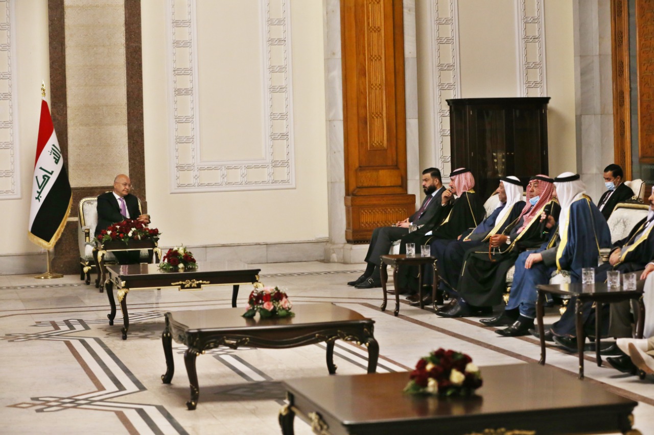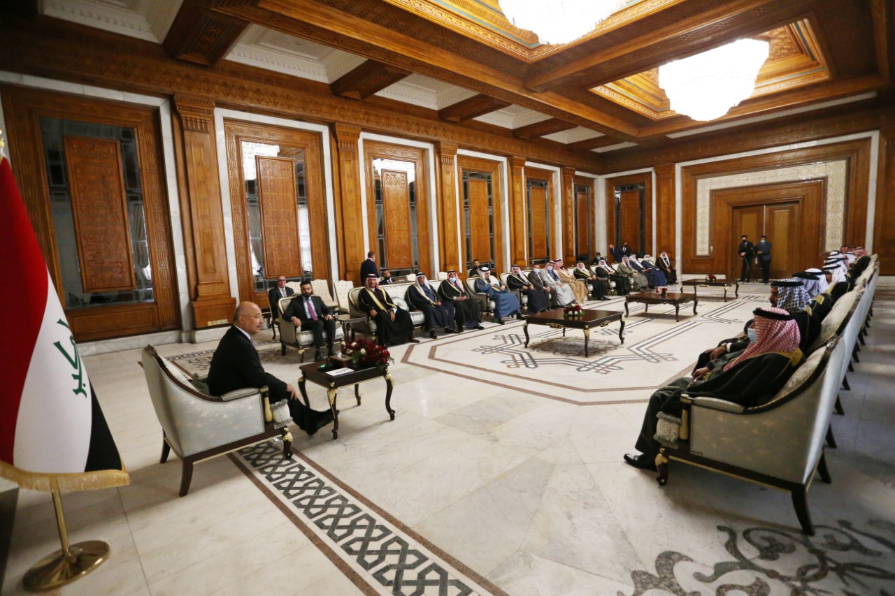 استقبل رئيس الجمهورية برهم صالح، اليوم الاثنين 18 كانون الثاني 2021 في قصر بغداد، وفداً ضم عدداً من شيوخ عشائر بغداد وبحضور النائب محمد الكربولي.