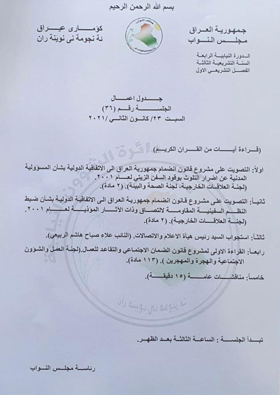 سياسةبالوثيقة .. جدول اعمال مجلس النواب لجلسة السبت المقبل قبل 5 سنوات 5 مشاهدات شارك قد يهمك أيضا سياسة وزير الخارجية للرئيس الإيراني: أمن المنطقة مترابط ولا يمكن تجزئته قبل 21 دقيقة 2 مشاهدات سياسة وزير الخارجية: أمن المنطقة مترابط ولا يمكن فصله ويجب إبعاد شبح التصعيد عنها قبل 31 دقيقة 3 مشاهدات سياسة وزير الخارجية: أمن إيران يشكل جزءاً أساسياً من أمن المنطقة ككل قبل 34 دقيقة 3 مشاهدات سياسة وزير الخارجية من طهران: التعامل مع التحديات يتطلب تحقيق قدر أعلى من الاستقرار الإقليمي قبل 51 دقيقة 4 مشاهدات عربي ودولي دول في الناتو تعلن دعمها لـ”غرينلاند” بعد تهديدات أمريكية بفرض رسوم جمركية قبل ساعة واحدة 7 مشاهدات