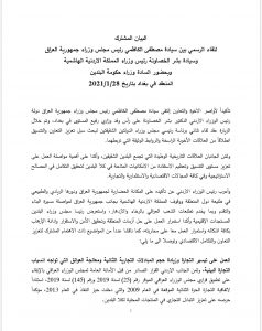 سياسةالبيان المشترك للقاء الكاظمي مع رئيس الوزراء الاردني بشر الخصاونة قبل 5 سنوات 1 مشاهدة شارك قد يهمك أيضا محليات اندلاع حريق داخل معمل لتكرير النفط في منطقة الكرغولية جنوب بغداد قبل 14 دقيقة 4 مشاهدات عربي ودولي الجيش السوري يعلن فرض حظر تجوال كامل في مدينة الشدادي وما حولها قبل 20 دقيقة 4 مشاهدات أمن الداخلية: اعتقال تاجر مخدرات دولي في سوريا واعادته الى العراق قبل 26 دقيقة 2 مشاهدات محليات وزارة التربية تعيد نظام المحاولات لطلبة السادس الإعدادي وتوضح تعليماته قبل ساعة واحدة 10 مشاهدات عربي ودولي الحكومة السورية: نرفض بشكل حازم محاولات الابتزاز الأمني في ملف الإرهاب قبل ساعتين 9 مشاهدات