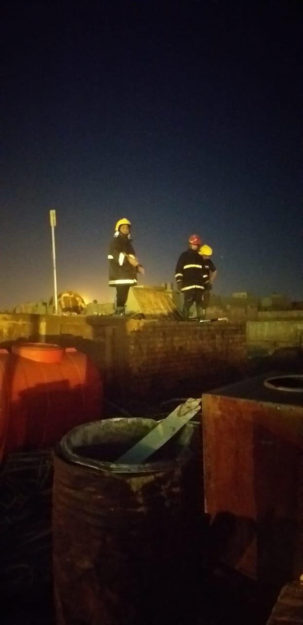 بالصور .. اخماد حريق داخل خان سكن وانتشال جثة امرأة مصرية شمالي بغداد