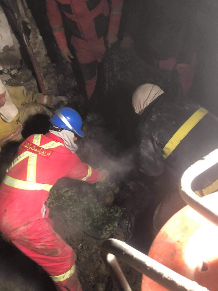 وتابعت، ان “ما زاد الامر صعوبة تهالك الدور القديمة المجاورة للخان المنهار المحترق لذا لجأت فرق انقاذ الدفاع المدني الى اخلاء الدور المجاورة من ساكنيها قبل تدعيمها بدعامات ساندة لمنع انهيارها وانهاء الحادث بوق قياسي مع العثور على جثة امرأة مصرية الجنسية وانقاذ زوجها وأطفالها الثلاثة بعد انهيار سقف غرفة سكنهم والغرف المجاورة لها”.