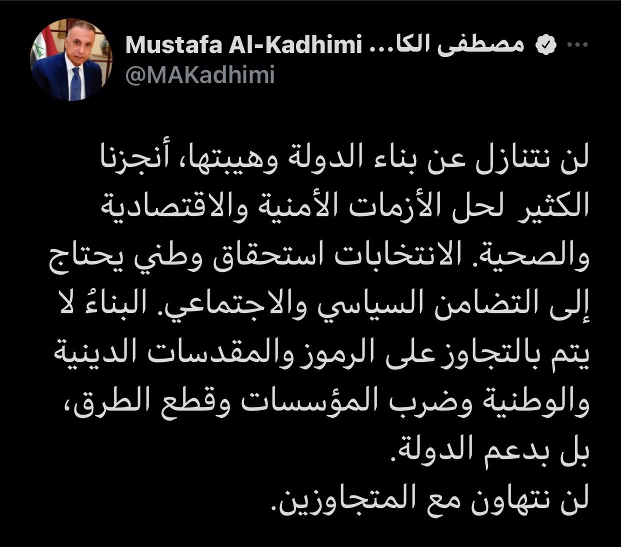 الاخبار العاجلةالكاظمي: الانتخابات استحقاق وطني يحتاج إلى التضامن السياسي والاجتماعي قبل 5 سنوات 3 مشاهدات شارك قد يهمك أيضا أمن أمن الحشد الشعبي يطيح بأحد إعلاميي داعش ومروجيه المكنّى “أبو البراء” في نينوى قبل 6 دقائق 1 مشاهدة سياسة السوداني يؤكد لقائد “قسد” ضرورة ترسيخ الحوار بما يضمن الحفاظ على وحدة سوريا وأمنها قبل 35 دقيقة 5 مشاهدات سياسة في اتصال هاتفي.. السوداني يبحث مع قائد “قسد” تطورات الأوضاع في سوريا قبل 38 دقيقة 4 مشاهدات الحكم الرابع الحكام في دوري نجوم العراق ظالم ام مظلوم قبل 43 دقيقة 4 مشاهدات سياسة الشرع يؤكد للسوداني حرص بلاده على أمن الحدود المشتركة بين العراق وسوريا قبل ساعتين 8 مشاهدات