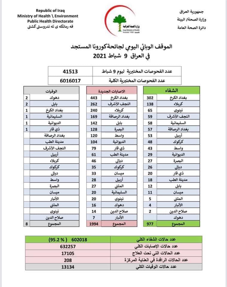 الاخبار العاجلةالصحة تعلن تسجيل 8 وفيات بكورونا و 977 حالة شفاء من الفيروس قبل 5 سنوات 1 مشاهدة شارك قد يهمك أيضا أمن أمن الحشد الشعبي يطيح بأحد إعلاميي داعش ومروجيه المكنّى “أبو البراء” في نينوى قبل ساعتين 11 مشاهدات سياسة السوداني يؤكد لقائد “قسد” ضرورة ترسيخ الحوار بما يضمن الحفاظ على وحدة سوريا وأمنها قبل ساعتين 8 مشاهدات سياسة في اتصال هاتفي.. السوداني يبحث مع قائد “قسد” تطورات الأوضاع في سوريا قبل 3 ساعات 8 مشاهدات الحكم الرابع الحكام في دوري نجوم العراق ظالم ام مظلوم قبل 3 ساعات 7 مشاهدات سياسة الشرع يؤكد للسوداني حرص بلاده على أمن الحدود المشتركة بين العراق وسوريا قبل 4 ساعات 10 مشاهدات