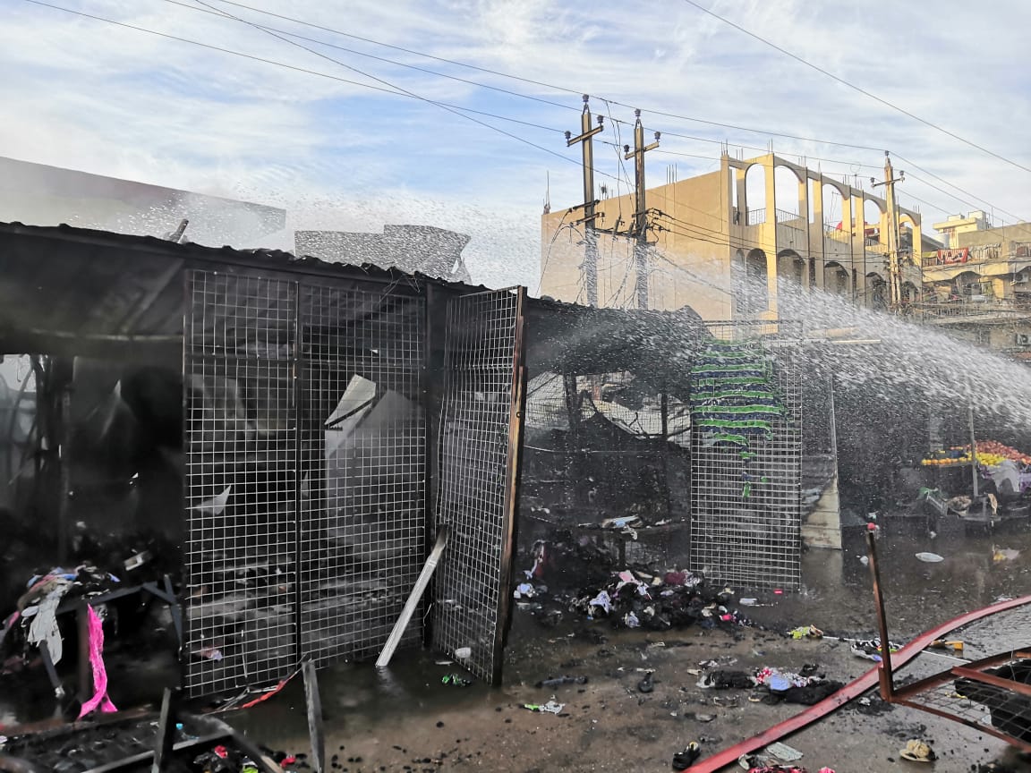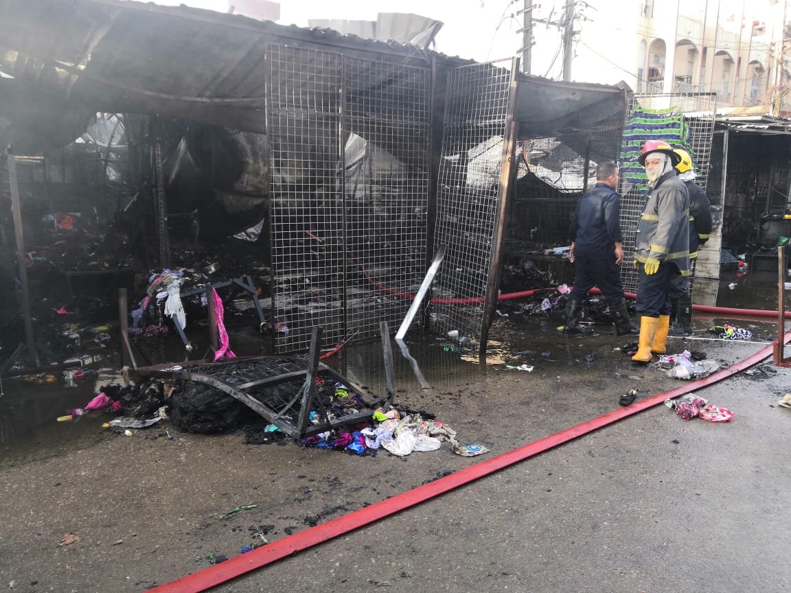 بالصور .. الدفاع المدني يخمد حريقاً داخل سوق بغداد الجديدة شرقي العاصمة