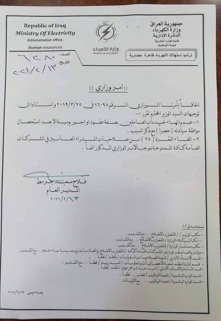 محلياتبالوثيقة .. الكهرباء تعلن عدم انهاء خدمات العقود والأجور يومية دون استحصال موافقة الوزير قبل 5 سنوات 7 مشاهدات شارك وزارة الكهرباء قد يهمك أيضا محليات اقتصادي: رواتب حملة الشهادات العليا المعينين حديثاً ستنخفض إلى 600 ألف دينار قبل 14 دقيقة 3 مشاهدات أقتصاد العراق يستورد مشمشاً مجففاً من تركيا بنحو 25 مليون دولار خلال 2025 قبل 31 دقيقة 2 مشاهدات سياسة المحكمة الاتحادية تبت باعتراضات المرشحين لمنصب رئيس الجمهورية وتعيد 4 منهم للسباق قبل 57 دقيقة 4 مشاهدات أقتصاد ارتفاع أسعار الصرف في الأسواق المحلية: 148500 دينار مقابل كل 100 دولار قبل ساعة واحدة 7 مشاهدات أمن السوداني يصل قاعدة عين الأسد للوقوف على جهوزية القطعات الماسكة للشريط الحدودي العراقي السوري قبل ساعة واحدة 6 مشاهدات