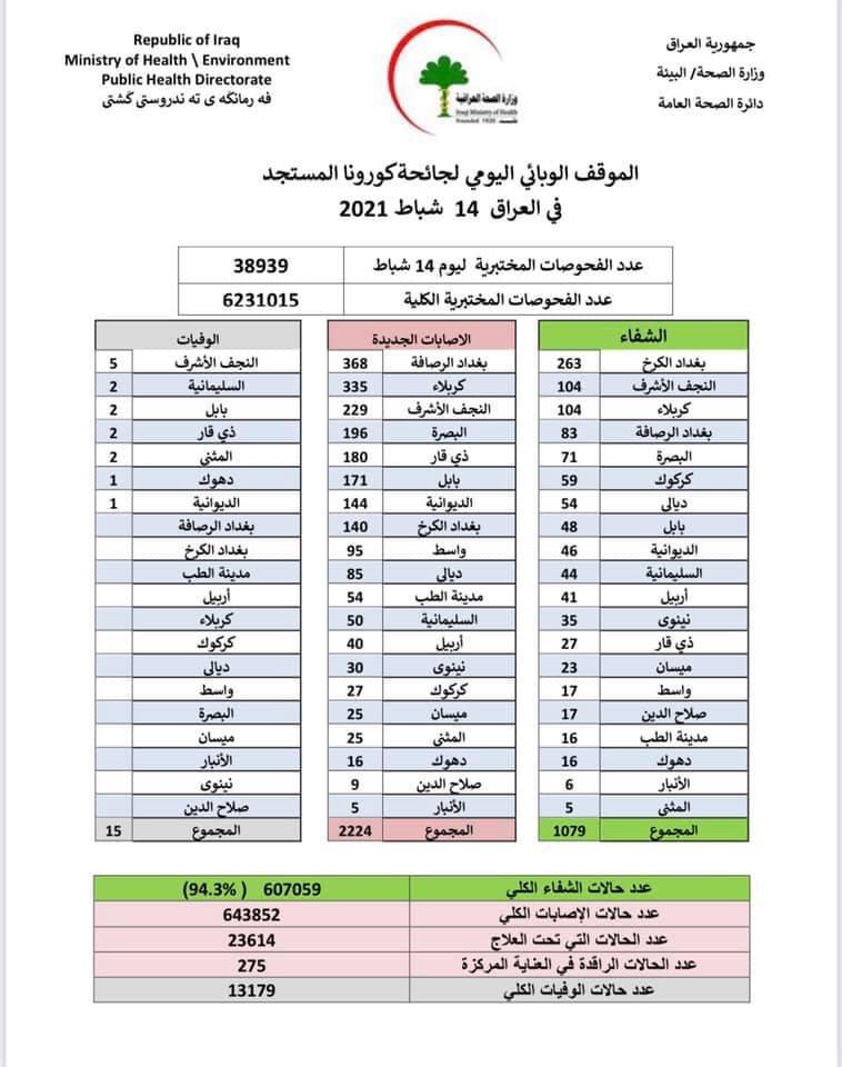 الاخبار العاجلةالصحة تعلن تسجيل 2224 اصابة جديدة بفيروس كورونا في عموم العراق قبل 5 سنوات 5 مشاهدات شارك قد يهمك أيضا عربي ودولي وفاة رفعت الأسد عم رئيس النظام السوري السابق بشار قبل 28 دقيقة 9 مشاهدات الاخبار العاجلة أردوغان يطالب “قسد” بحل نفسها وإلقاء السلاح “فورا” قبل 35 دقيقة 6 مشاهدات رياضة بجملة قاطعة.. فينيسيوس يحسم إمكانية رحيله عن ريال مدريد قبل 56 دقيقة 8 مشاهدات محليات فرق الدفاع المدني تفرض سيطرتها على حريق اندلع داخل مخزن للمواد الإنشائية في النجف قبل ساعتين 8 مشاهدات أمن الإطاحة بإرهابي خطير شغل مناصب لدى داعش في كركوك قبل ساعتين 9 مشاهدات