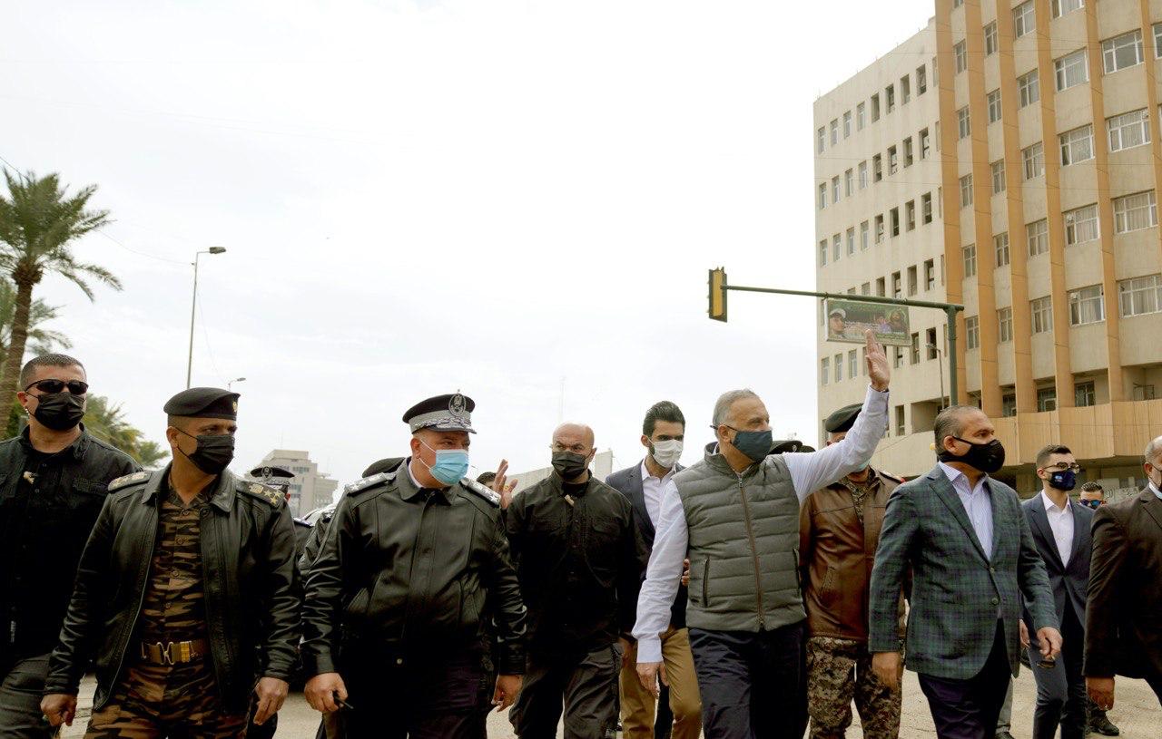 كما رئيس مجلس الوزراء خلال جولته التفقدية، بعدد من الضباط وعناصر القوات الامنية، واثنى على جهودهم وجهود جميع القوات الامنية التي تعمل على تطبيق اجراءات حظر التجوال الشامل في العاصمة بغداد وباقي المحافظات.