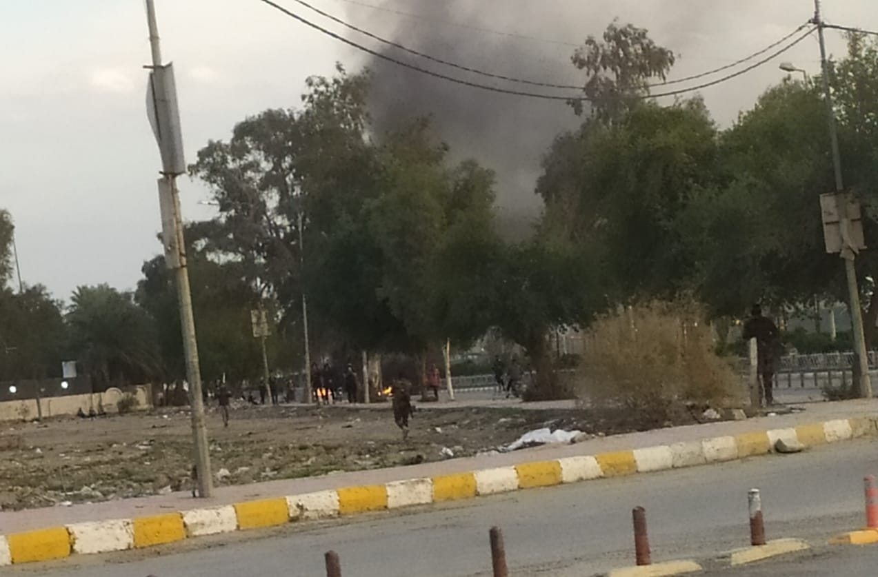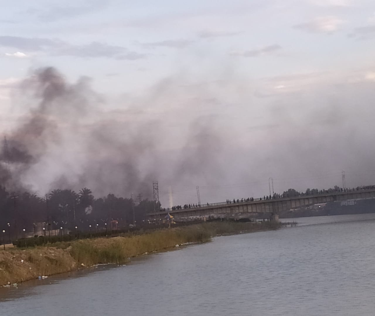 وكانت مجموعة من المتظاهرين قد قامت، في وقت سابق اليوم، بقطع جسر النصر وسط الناصرية بالاطارات المحترقة.