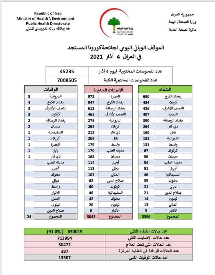 الاخبار العاجلةالصحة تعلن تسجيل 24 وفاة بكورونا و 3396 حالة شفاء من الفيروس قبل 5 سنوات 1 مشاهدة شارك قد يهمك أيضا سياسة الاطار التنسيقي يدعو البرلمان الى عقد جلسته المخصصة لانتخاب رئيس الجمهورية قبل 39 دقيقة 8 مشاهدات سياسة الاطار التنسيقي يعلن ترشيح “نوري المالكي” لرئاسة الحكومة العراقية المقبلة قبل 43 دقيقة 5 مشاهدات الاخبار العاجلة الاستخبارات العسكرية تطيح بتاجرة للأعضاء البشرية في كركوك قبل 46 دقيقة 5 مشاهدات سياسة المجلس السياسي الوطني يدعو قادة الاطار التنسيقي للالتزام بمبدأ القبول الوطني لمرشحي الرئاسات قبل ساعة واحدة 10 مشاهدات سياسة المجلس السياسي الوطني مخاطبًا الاطار التنسيقي: نرفض تقديم مرشح جدلي ارتبط اسمه بأيام الأزمات قبل ساعة واحدة 10 مشاهدات