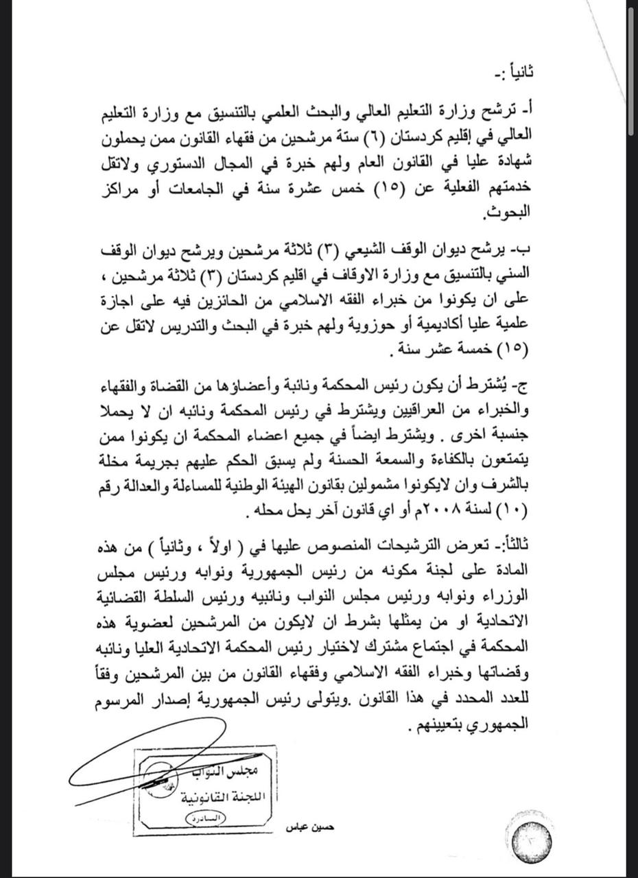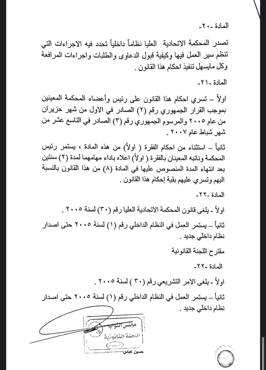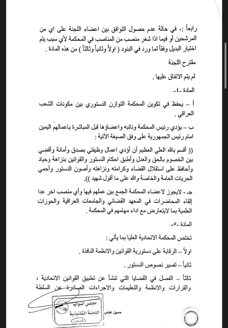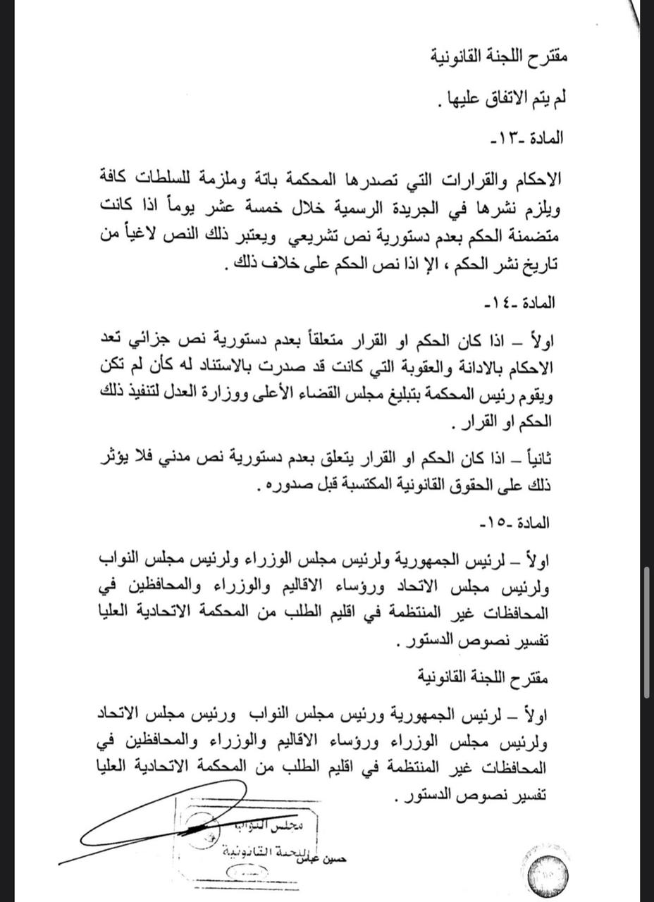 سياسةالرشيد تنشر نص مشروع قانون المحكمة الاتحادية قبل 5 سنوات 7 مشاهدات شارك اقرأ ايضا مسعود بارزاني يرحب بترشيح المالكي لرئاسة الوزراء رئيس حزب التشريع: تجربة مجلس القضاء بقيادة القاضي “فائق زيدان” تعكس دوره في حفظ الاستقرار وتعزيز التفاهم الوطني رئيس حزب التشريع الوطني في يوم القضاء: ركن أساسي في استقرار الدولة وانتظام عمل مؤسساتها الاطار التنسيقي يدعو البرلمان الى عقد جلسته المخصصة لانتخاب رئيس الجمهورية قد يهمك أيضا عربي ودولي الدفاع السورية: تمديد مهلة وقف إطلاق النار مع “قسد” 15 يومًا قبل 18 دقيقة 5 مشاهدات سياسة مسعود بارزاني يرحب بترشيح المالكي لرئاسة الوزراء قبل 20 دقيقة 4 مشاهدات سياسة رئيس حزب التشريع: تجربة مجلس القضاء بقيادة القاضي “فائق زيدان” تعكس دوره في حفظ الاستقرار وتعزيز التفاهم الوطني قبل ساعة واحدة 8 مشاهدات سياسة رئيس حزب التشريع الوطني في يوم القضاء: ركن أساسي في استقرار الدولة وانتظام عمل مؤسساتها قبل ساعة واحدة 5 مشاهدات سياسة الاطار التنسيقي يدعو البرلمان الى عقد جلسته المخصصة لانتخاب رئيس الجمهورية قبل ساعتين 10 مشاهدات