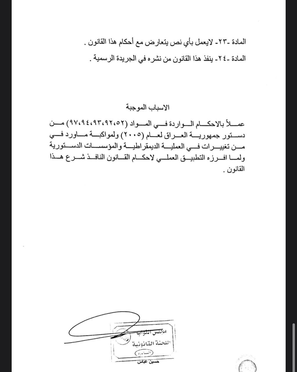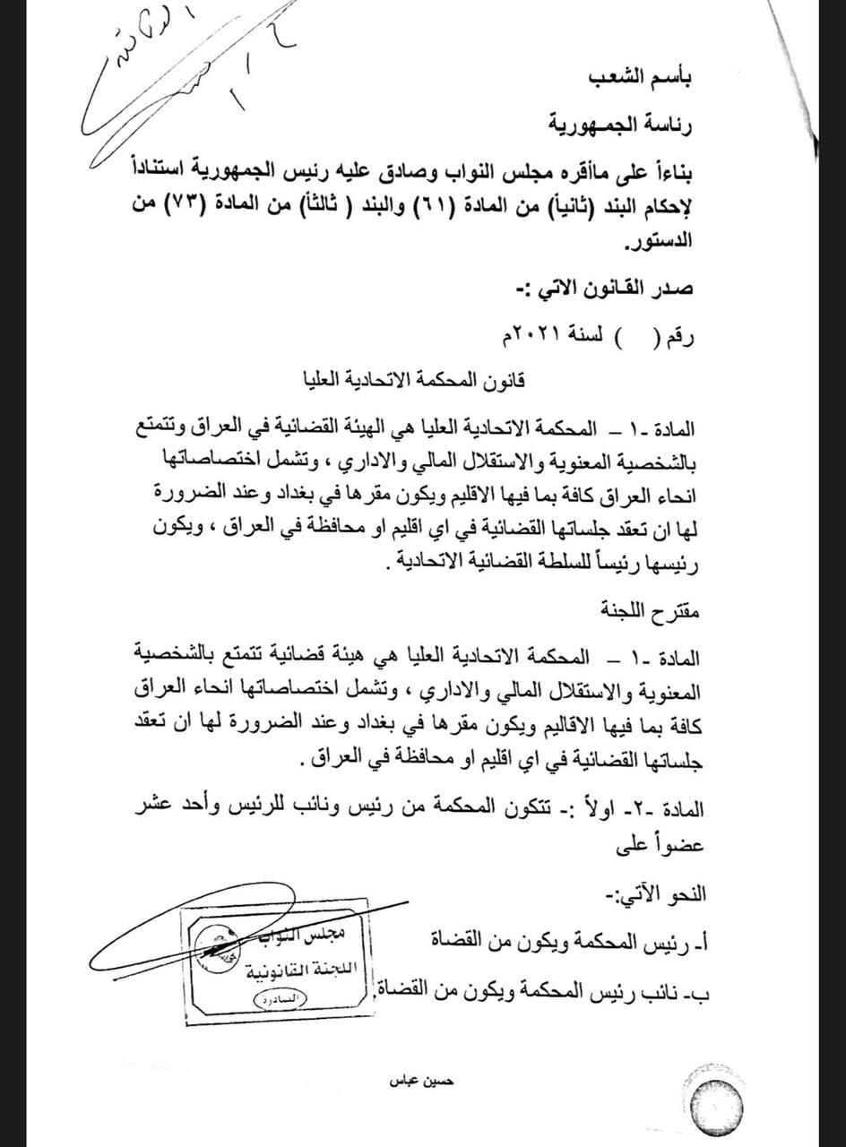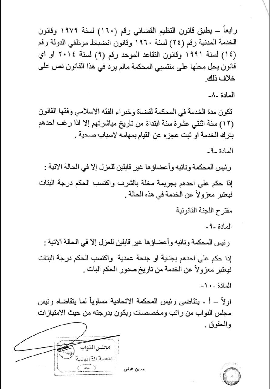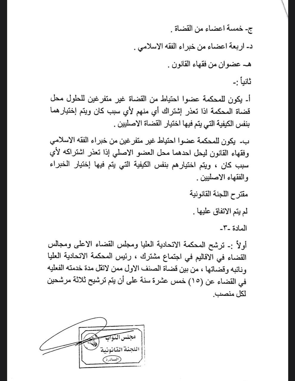 سياسةالرشيد تنشر نص مشروع قانون المحكمة الاتحادية قبل 5 سنوات 7 مشاهدات شارك اقرأ ايضا مسعود بارزاني يرحب بترشيح المالكي لرئاسة الوزراء رئيس حزب التشريع: تجربة مجلس القضاء بقيادة القاضي “فائق زيدان” تعكس دوره في حفظ الاستقرار وتعزيز التفاهم الوطني رئيس حزب التشريع الوطني في يوم القضاء: ركن أساسي في استقرار الدولة وانتظام عمل مؤسساتها الاطار التنسيقي يدعو البرلمان الى عقد جلسته المخصصة لانتخاب رئيس الجمهورية قد يهمك أيضا عربي ودولي الدفاع السورية: تمديد مهلة وقف إطلاق النار مع “قسد” 15 يومًا قبل 18 دقيقة 5 مشاهدات سياسة مسعود بارزاني يرحب بترشيح المالكي لرئاسة الوزراء قبل 20 دقيقة 4 مشاهدات سياسة رئيس حزب التشريع: تجربة مجلس القضاء بقيادة القاضي “فائق زيدان” تعكس دوره في حفظ الاستقرار وتعزيز التفاهم الوطني قبل ساعة واحدة 8 مشاهدات سياسة رئيس حزب التشريع الوطني في يوم القضاء: ركن أساسي في استقرار الدولة وانتظام عمل مؤسساتها قبل ساعة واحدة 5 مشاهدات سياسة الاطار التنسيقي يدعو البرلمان الى عقد جلسته المخصصة لانتخاب رئيس الجمهورية قبل ساعتين 10 مشاهدات