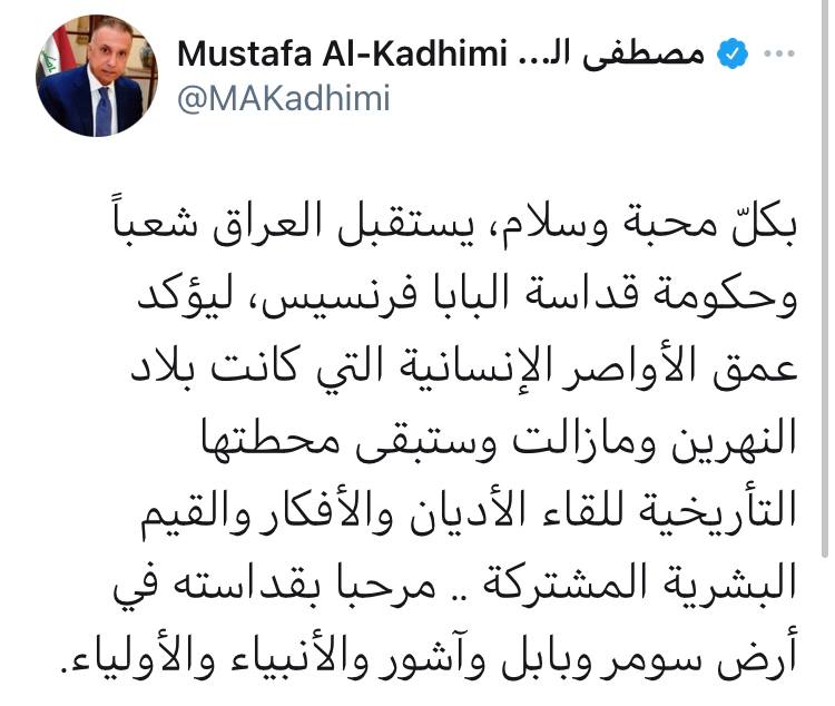 الاخبار العاجلةالكاظمي مغرداً: مرحباً بقداسة البابا في أرض سومر وبابل وآشور والأنبياء والأولياء قبل 5 سنوات 1 مشاهدة شارك قد يهمك أيضا عربي ودولي قسد: اتفاق تمديد وقف إطلاق النار 15 يومًا بوساطة دولية تزامنا مع استمرار الحوار مع دمشق قبل ساعة واحدة 6 مشاهدات عربي ودولي الدفاع السورية: تمديد مهلة وقف إطلاق النار مع “قسد” 15 يومًا قبل ساعتين 8 مشاهدات الاخبار العاجلة مسعود بارزاني يرحب بترشيح المالكي لرئاسة الوزراء قبل ساعتين 10 مشاهدات سياسة رئيس حزب التشريع: تجربة مجلس القضاء بقيادة القاضي “فائق زيدان” تعكس دوره في حفظ الاستقرار وتعزيز التفاهم الوطني قبل 3 ساعات 9 مشاهدات سياسة رئيس حزب التشريع الوطني في يوم القضاء: ركن أساسي في استقرار الدولة وانتظام عمل مؤسساتها قبل 3 ساعات 6 مشاهدات