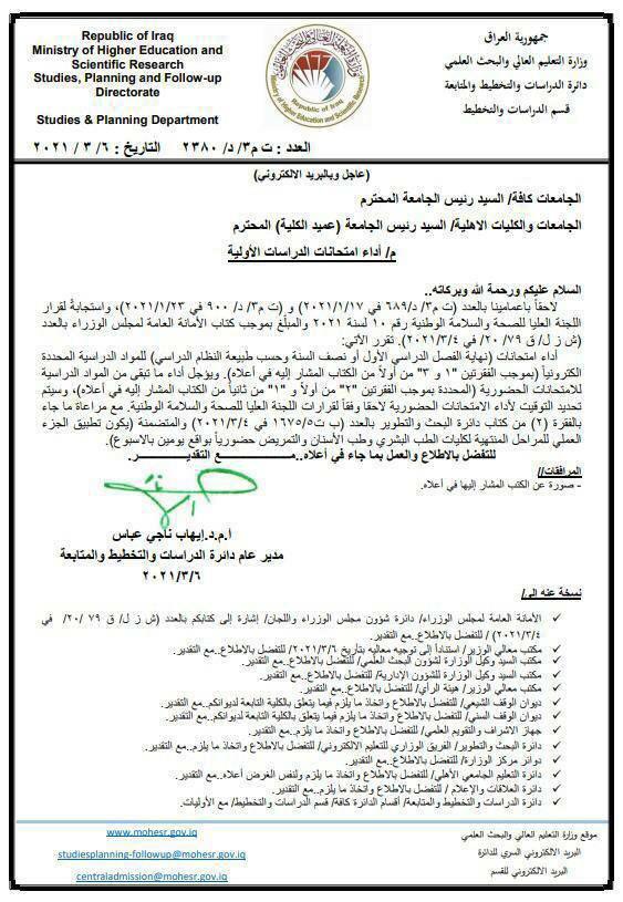 محلياتبالوثيقة.. التعليم تحدد آلية الامتحانات لطلبة الدراسات الأولية في الجامعات والكليات قبل 5 سنوات 2 مشاهدات شارك وزارة التعليم قد يهمك أيضا سياسة سبعة وزراء يؤدون اليمين الدستورية نواباً في مجلس النواب قبل 3 دقائق 1 مشاهدة سياسة مجلس النواب يحدد الثلاثاء المقبل موعداً لجلسة انتخاب رئيس الجمهورية قبل 6 دقائق 2 مشاهدات سياسة مجلس النواب يعقد جلسته الخاصة بمناقشة التحديات الأمنية والحدودية قبل 15 دقيقة 2 مشاهدات أمن الجنائية المركزية: الإعدام بحق 8 مدانين ضبطت بحوزتهم 600 ألف حبة مخدرة قبل 23 دقيقة 3 مشاهدات أمن رئيس مجلس القضاء الأعلى يؤكد على محاكمة معتقلي داعش المنقولين من سوريا وفق القانون العراقي قبل 44 دقيقة 3 مشاهدات