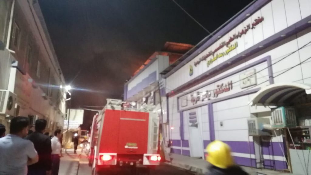 واوضحت، ان “فرق الدفاع المدني طوقت وعزلت النيران التي اشتعلت اعلى سطح البناية وابعدت خطرها عن خزين وقود الگاز الخاص بالمولدات الكهربائية ومنعت امتداد النيران إلى المجمعات الطبية المجاورة وانهت الحادث دون تسجيل اصابات بشرية مع تحجيم اضرارها المادية”.