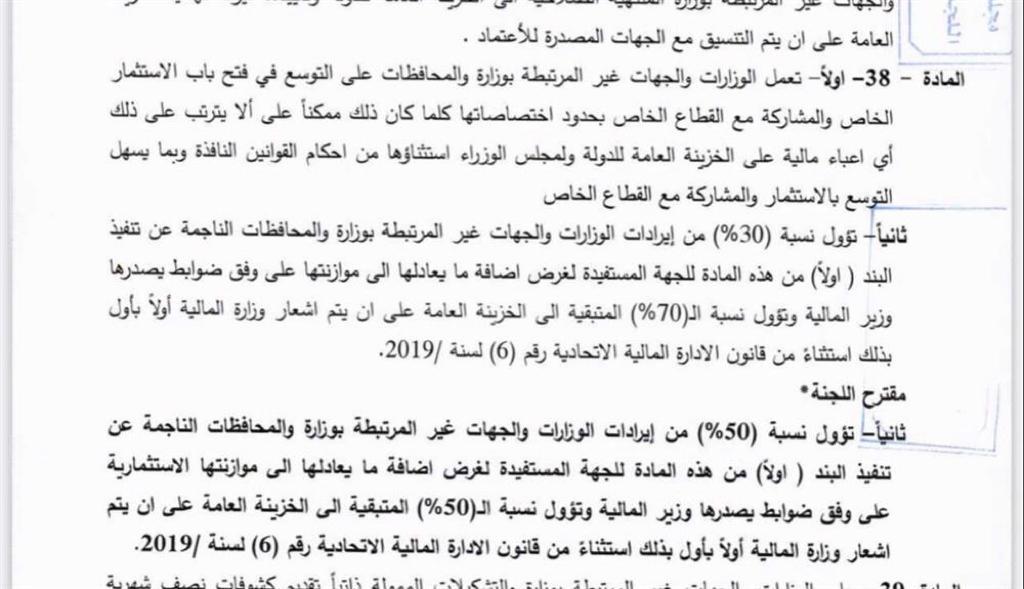 سياسةنص المادة 38 المحذوفة من مشروع قانون الموازنة العامة (وثيقة) قبل 5 سنوات 3 مشاهدات شارك قد يهمك أيضا أقتصاد تحول العراق لـ”بؤر مسرطنة”.. مرصد حقوقي: العراقيون ينفقون نحو 10 مليارات دولار على المولدات سنوياً قبل 9 دقائق 2 مشاهدات محليات خلال 2025.. العراق يسجل 71528 حالة طلاق و329130 عقد زواج قبل 26 دقيقة 3 مشاهدات سياسة مجلس النواب يؤجل انعقاد جلسته لمدة نصف ساعة لعدم اكتمال النصاب القانوني قبل 35 دقيقة 4 مشاهدات محليات وزير الثقافة: اليوم أو غداً ستصرف منحة الفنانين والصحفيين والأدباء قبل 37 دقيقة 10 مشاهدات عربي ودولي الصين تحقق مع جنرال رفيع بتهمة “تسريب أسرار نووية إلى الولايات المتحدة” قبل 40 دقيقة 3 مشاهدات