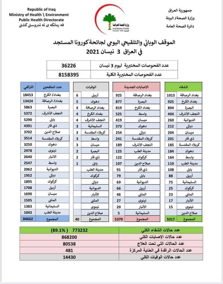 محلياتالصحة تعلن تسجيل 5379 اصابة جديدة بكورونا في عموم العراق قبل 5 سنوات 1 مشاهدة شارك قد يهمك أيضا أمن مجلس الأمن الوطني يقرر تشكيل لجنة أمنية للاشراف على نقل عناصر داعش من سوريا الى العراق قبل 16 دقيقة 3 مشاهدات أمن مجلس الأمن الوطني يؤكد أهمية استمرار التعاون مع التحالف الدولي بملف نقل عناصر داعش للعراق قبل 18 دقيقة 3 مشاهدات أمن مجلس الأمن الوطني: قرار نقل عناصر داعش الى العراق أمني بحت يهدف الى حماية البلاد قبل 19 دقيقة 3 مشاهدات أقتصاد وزير الاتصالات الإيراني: انقطاع الإنترنت يهدد الاقتصاد بخسائر تصل لـ50 تريليون ريال يوميًا قبل 58 دقيقة 5 مشاهدات عربي ودولي الأمين العام لحزب الله اللبناني: الحرب على إيران قد تشعل المنطقة هذه المرة قبل ساعتين 6 مشاهدات