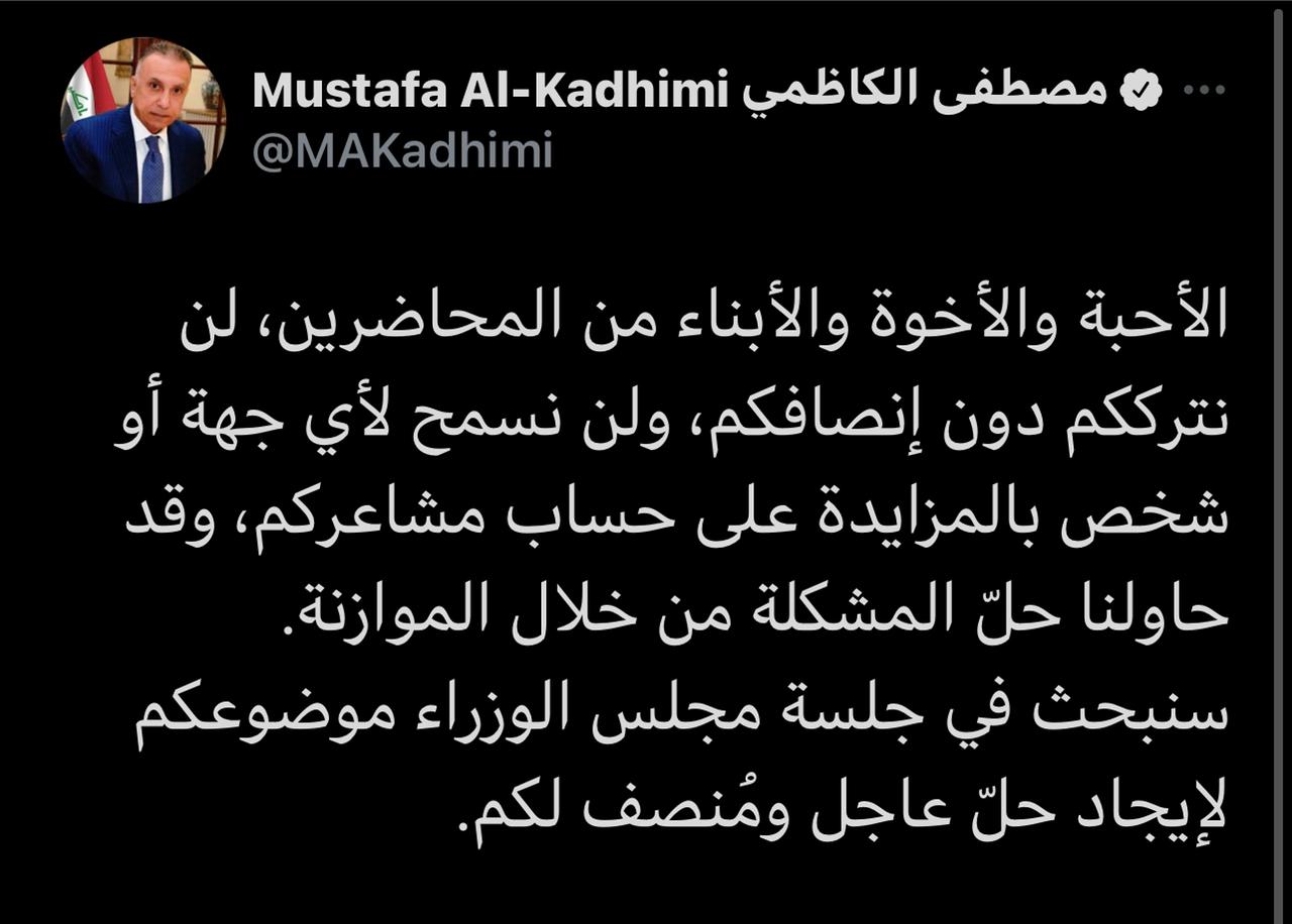 سياسةالكاظمي للمحاضرين: لن نترككم دون إنصافكم قبل 5 سنوات 3 مشاهدات شارك قد يهمك أيضا سياسة مجلس النواب ينفي تأجيل جلسة انتخاب رئيس الجمهورية قبل ساعة واحدة 5 مشاهدات الحكم الرابع يونس محمود يكشف اسباب الخلاف مع درجال ويؤكد الاستمرار بصراع الرئاسة.. التفاصيل في الحكم الرابع قبل ساعتين 5 مشاهدات سياسة الاطار التنسيقي يشدد على ضرورة احترام التوقيتات الدستوريةً وحسم الاستحقاقات الوطنية قبل ساعتين 5 مشاهدات سياسة الإطار التنسيقي يدعو لاتفاق يسهل عملية انتخاب رئيس الجمهورية ضمن الموعد المحدد دستورياً قبل ساعتين 10 مشاهدات سياسة المبعوث الامريكي الى سوريا: لن تنجح حكومة في العراق تُنصّبها إيران قبل ساعتين 23 مشاهدات