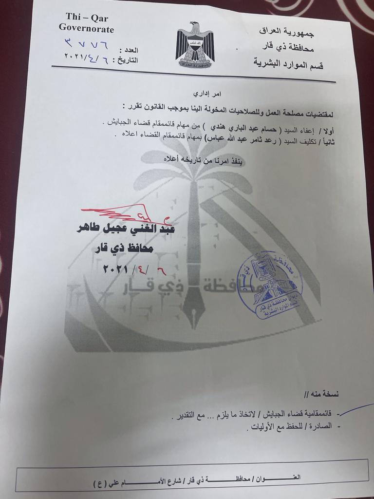محلياتبالوثيقة .. اعفاء قائمقام قضاء الجبايش في ذي قار من منصبه قبل 5 سنوات 38 مشاهدات شارك قد يهمك أيضا سياسة مجلس النواب ينفي تأجيل جلسة انتخاب رئيس الجمهورية قبل ساعتين 8 مشاهدات الحكم الرابع يونس محمود يكشف اسباب الخلاف مع درجال ويؤكد الاستمرار بصراع الرئاسة.. التفاصيل في الحكم الرابع قبل 3 ساعات 12 مشاهدات سياسة الاطار التنسيقي يشدد على ضرورة احترام التوقيتات الدستوريةً وحسم الاستحقاقات الوطنية قبل 3 ساعات 8 مشاهدات سياسة الإطار التنسيقي يدعو لاتفاق يسهل عملية انتخاب رئيس الجمهورية ضمن الموعد المحدد دستورياً قبل 3 ساعات 12 مشاهدات سياسة المبعوث الامريكي الى سوريا: لن تنجح حكومة في العراق تُنصّبها إيران قبل 3 ساعات 25 مشاهدات