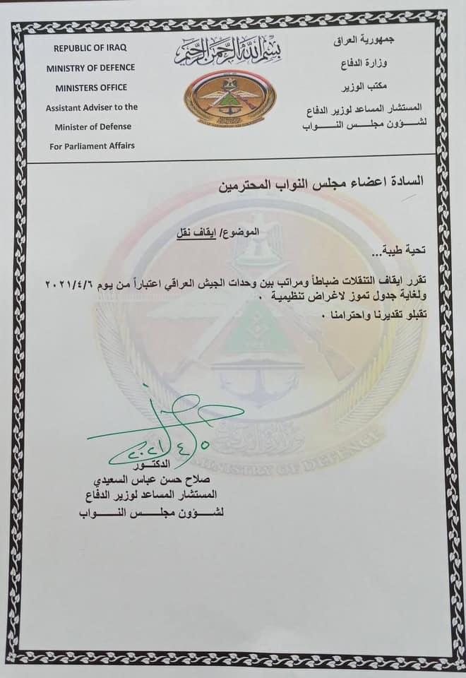 أمنبالوثيقة .. الدفاع تقرر ايقاف التنقلات بين وحدات الجيش ضباطاً ومراتب لغاية جدول تموز قبل 5 سنوات 7 مشاهدات شارك قد يهمك أيضا سياسة مجلس النواب ينفي تأجيل جلسة انتخاب رئيس الجمهورية قبل ساعتين 8 مشاهدات الحكم الرابع يونس محمود يكشف اسباب الخلاف مع درجال ويؤكد الاستمرار بصراع الرئاسة.. التفاصيل في الحكم الرابع قبل 3 ساعات 12 مشاهدات سياسة الاطار التنسيقي يشدد على ضرورة احترام التوقيتات الدستوريةً وحسم الاستحقاقات الوطنية قبل 4 ساعات 8 مشاهدات سياسة الإطار التنسيقي يدعو لاتفاق يسهل عملية انتخاب رئيس الجمهورية ضمن الموعد المحدد دستورياً قبل 4 ساعات 12 مشاهدات سياسة المبعوث الامريكي الى سوريا: لن تنجح حكومة في العراق تُنصّبها إيران قبل 4 ساعات 25 مشاهدات