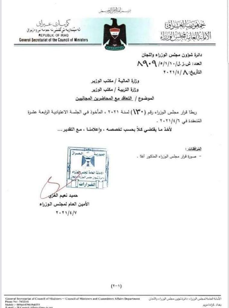 محلياتبالوثيقة .. نص قرار مجلس الوزراء بالتعاقد مع المحاضرين المجانيين قبل 5 سنوات 32 مشاهدات شارك قد يهمك أيضا عربي ودولي الجيش اللبناني يعلن تفكيك جهاز تجسس إسرائيلي متطور قبل 11 دقيقة 3 مشاهدات الثامنة بنادق الفصائل إلى الحرق! قبل 16 دقيقة 4 مشاهدات رياضة برشلونة يهزم فياريال ويعزز صدارته للدوري الاسباني قبل 18 دقيقة 4 مشاهدات سياسة الرئيس الحلبوسي يبحث مع السفير الألماني تعزيز التعاون الاقتصادي والامني بين البلدين قبل ساعة واحدة 7 مشاهدات محليات التربية تصدر توجيهات بشأن امتحانات نصف السنة قبل ساعة واحدة 6 مشاهدات