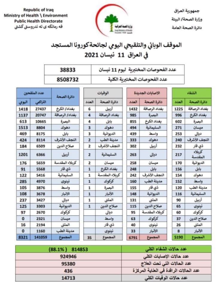 محلياتالصحة تعلن تسجيل 6791 اصابة جديدة بكورونا في عموم العراق قبل 5 سنوات 1 مشاهدة شارك قد يهمك أيضا عربي ودولي ترامب: مجلس السلام حول غزة ربما يمتد إلى مناطق أخرى حسب الحاجة قبل 8 دقائق 1 مشاهدة أقتصاد مجلس الوزراء يوافق على إصدار ضوابط لتنظيم استيراد المواد المستعملة قبل 35 دقيقة 6 مشاهدات أقتصاد مجلس الوزراء يقرر عدَّ منفذ مندلي- سومار الحدودي منفذاً دولياً قبل 37 دقيقة 7 مشاهدات سياسة “الرشيد” تنشر نص قرارات مجلس الوزراء في جلسة اليوم قبل 40 دقيقة 5 مشاهدات أمن “الواوي” و”ميمي” ضمن المتهمين.. شرطة الكرخ: الاطاحة بعصابة لسرقة الدراجات النارية قبل ساعة واحدة 5 مشاهدات