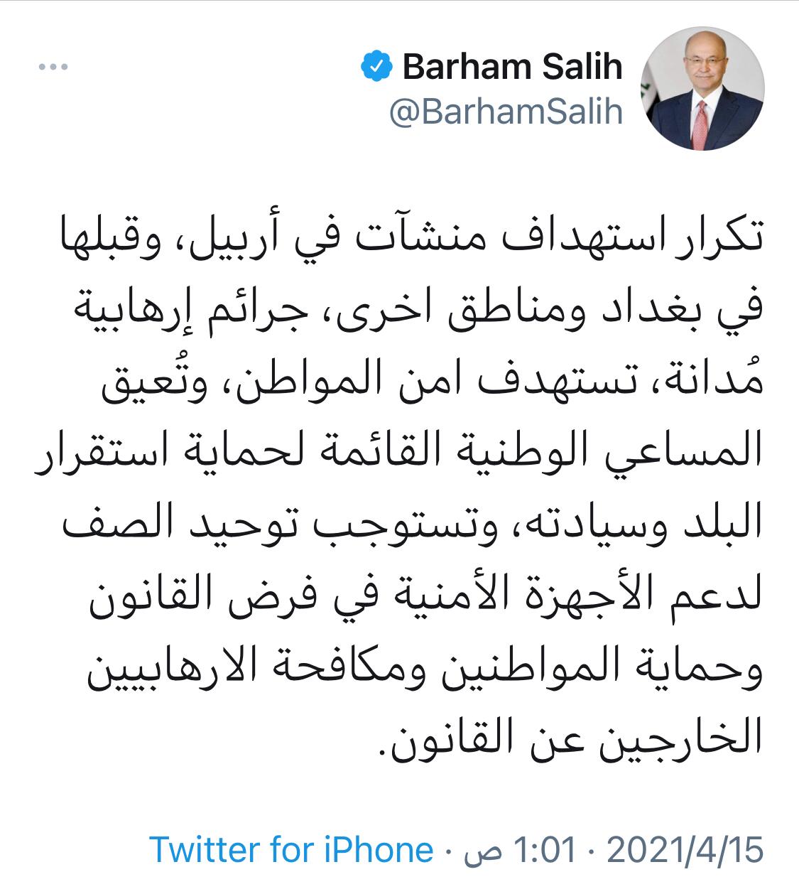 سياسةرئيس الجمهورية: تكرار استهداف منشآت في أربيل جرائم إرهابية مُدانة تستهدف أمن المواطن قبل 5 سنوات 3 مشاهدات شارك قد يهمك أيضا محليات انتخاب “علي تركي الجمالي” محافظًا لبابل قبل 6 ساعات 20 مشاهدات أمن الداخلية تعلن التحقيق في اتهامات لأحد ضباط شرطة الرصافة بقضايا غير أخلاقية قبل 7 ساعات 21 مشاهدات الاخبار العاجلة ترامب: نوري المالكي لديه سياسات وايديلوجيات متطرفة والعراق انزلق للفوضى والفقر في عهده قبل 7 ساعات 33 مشاهدات الاخبار العاجلة ترامب: لن نقدم اي مساعدة للعراق اذا تم تنصيب “نوري المالكي” رئيسًا للوزراء قبل 7 ساعات 30 مشاهدات الاخبار العاجلة ترامب: العراق سيرتكب خطأ فادحًا إذا أعاد تنصيب “نوري المالكي” رئيسًا للوزراء قبل 7 ساعات 60 مشاهدات