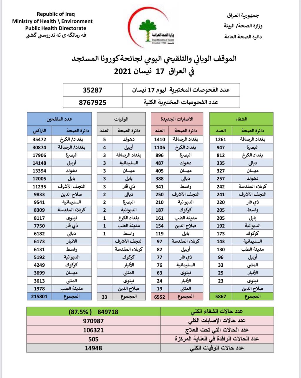 محلياتالصحة تعلن تسجيل 6552 اصابة جديدة بكورونا في عموم العراق قبل 5 سنوات 3 مشاهدات شارك قد يهمك أيضا أمن بالتنسيق مع الجهات السورية.. اعتقال 4 متهمين وضبط اكثر من مليون وسبعمائة ألف حبة مخدرة قبل 6 ساعات 13 مشاهدات سياسة رئيس البرلمان يوجه بالإيعاز إلى الجهات المعنية لإطلاق الرواتب المتوقفة بدون سند قانوني قبل 6 ساعات 16 مشاهدات عربي ودولي ترامب: الحرب مع إيران ستنتهي قريباً جداً قبل 7 ساعات 16 مشاهدات أقتصاد انخفاض اسعار صرف الدولار مع الاغلاق قبل 8 ساعات 17 مشاهدات عربي ودولي بدء محاكمة الرئيس السوري السابق بشار الأسد غيابياً بدمشق قبل 9 ساعات 19 مشاهدات