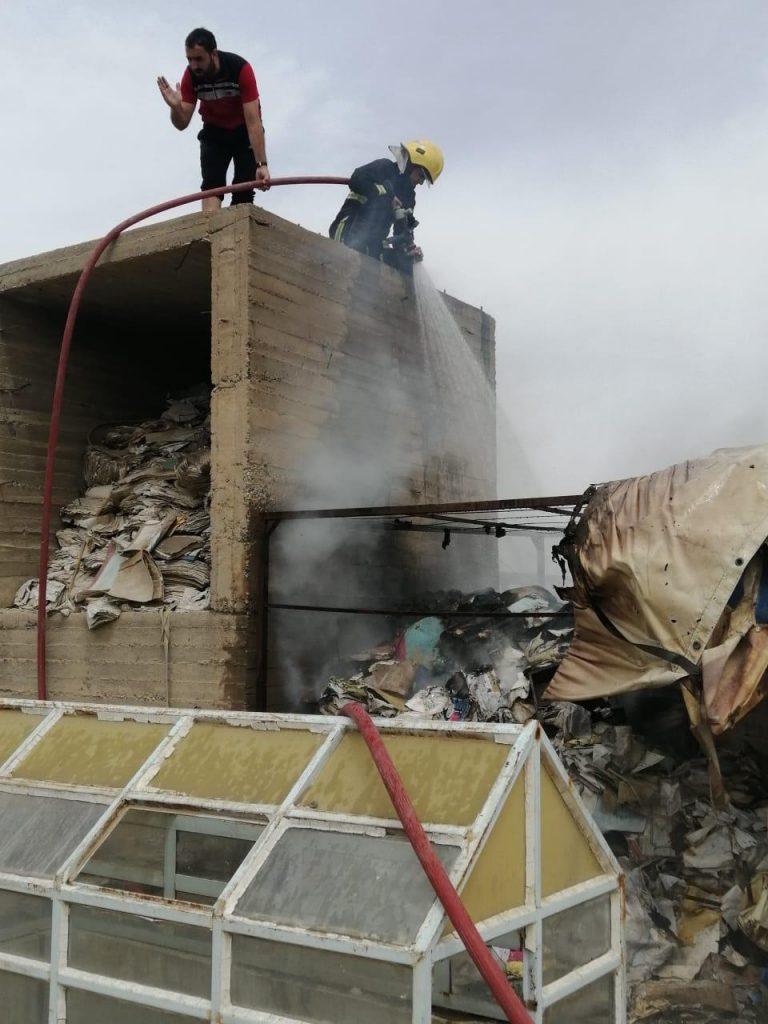 بالصور .. الدفاع المدني يخمد حريقاً اندلع داخل دائرة ضرائب سامراء