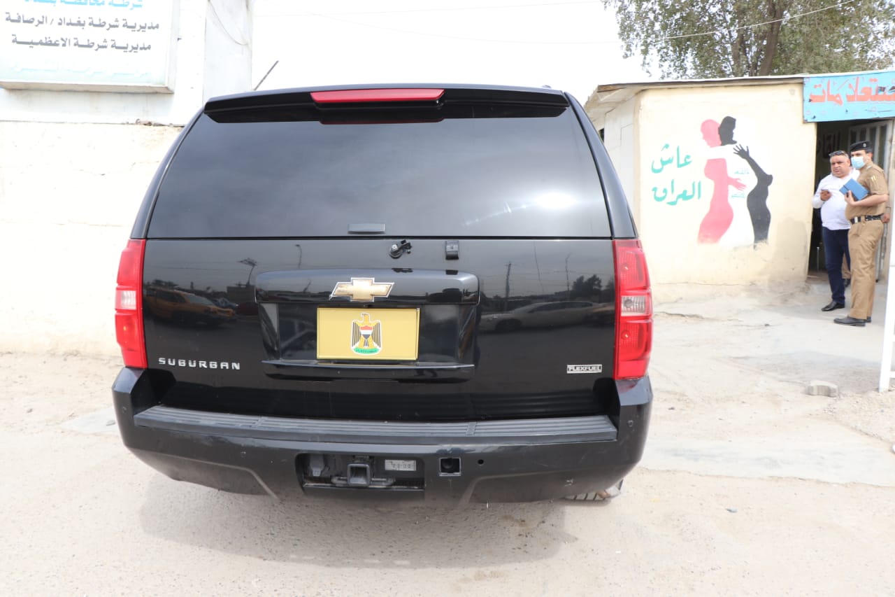وقالت القيادة، في بيان تلقته الرشيد، انه “بعد ظهر اليوم، واثناء تجوال قائد شرطة بغداد ضمن قاطع المسؤولية لاحظ عجلة نوع شوفرليت سوبر بان سوداء اللون مضللة من جميع الجهات بما في ذلك الزجاج الأمامي وبدون لوحات تسجيل، وقد تم وضع شعار الجمهورية بدلا عن الارقام”.
