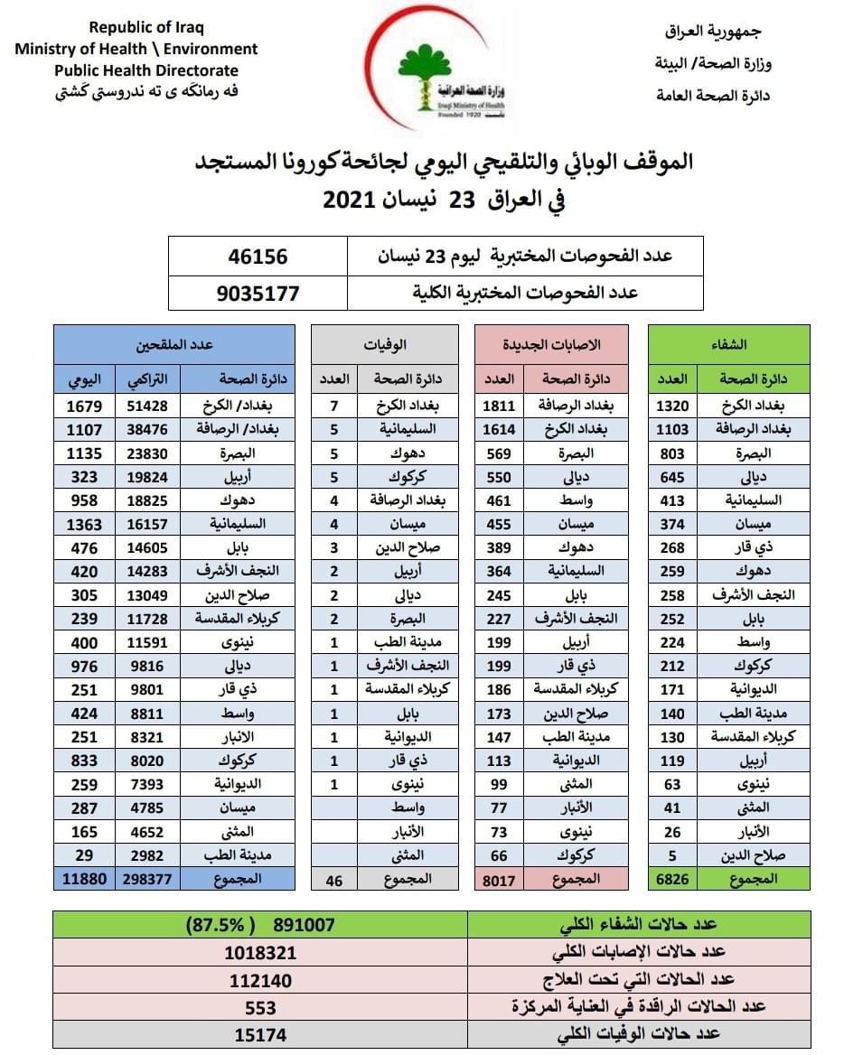 محلياتالصحة تعلن تسجيل 8017 اصابة جديدة بكورونا في عموم العراق قبل 5 سنوات 2 مشاهدات شارك قد يهمك أيضا عربي ودولي إعلام إسرائيلي: تقديرات تشير لاتخاذ ترامب قرار مهاجمة إيران قبل 5 ساعات 19 مشاهدات محليات اللجنة المشرفة على الزيارة الشعبانية تعلن جاهزيتها الكاملة لاحياء مناسبة النصف من شعبان قبل 6 ساعات 25 مشاهدات محليات التربية تسمح لخريجي التطبيقي والأحيائي بالاشتراك في الامتحانات التمهيدية (الخارجي) للفرع العلمي قبل 7 ساعات 20 مشاهدات أقتصاد الريال الإيراني يهبط لأدنى مستوى له أمام الدولار لليوم الثاني على التوالي قبل 8 ساعات 19 مشاهدات عربي ودولي وزير الخارجية الإيراني: طهران رحبت مرارًا باتفاق نووي عادل يكفل عدم امتلاكها أسلحة نووية قبل 8 ساعات 9 مشاهدات