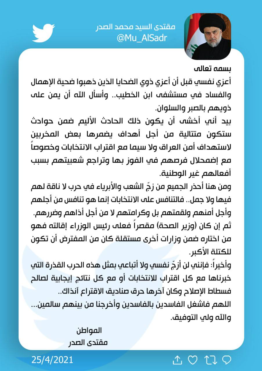 سياسةالصدر: اخشى ان تكون حادثة ابن الخطيب ضمن حوادث متتالية لاستهداف امن العراق قبل 5 سنوات 3 مشاهدات شارك قد يهمك أيضا أمن الاستخبارات العسكرية تحبط محاولة تهريب مواد غذائية إلى محافظة ديالى قبل 8 دقائق 2 مشاهدات سياسة القضاء يدعو الأحزاب والقوى السياسية للالتزام بالتوقيتات الدستورية حفاظاً على الاستقرار السياسي قبل 22 دقيقة 3 مشاهدات سياسة القضاء يدعو الى منع أي تدخل خارجي بشأن تعيين رئيسي الجمهورية والوزراء قبل 24 دقيقة 3 مشاهدات أمن الداخلية تعلن انطلاق الخطة الخاصة بزيارة النصف من شعبان قبل 44 دقيقة 4 مشاهدات محليات النزاهة: السجــن 7 سنوات لمدير عام صحة صلاح الدين الأسبق لاحداثه ضررًا في المال العام قبل ساعة واحدة 6 مشاهدات