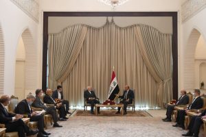 وأكّد الرئيس برهم صالح، أن سياسة الانفتاح التي يتبناها العراق على محيطه الإقليمي والدولي تهدف لبناء علاقات متوازنة داعمة لجهود تخفيف التوترات والأزمات، لافتاً إلى أن العراق المقتدر والمستقل ذات السيادة يُمثل مصلحة مشتركة لكل المنطقة، وعاملاً أساسياً في تعزيز استقرارها ومرتكز لمنظومة عمل تقوم على قضايا الأمن المشترك والاقتصاد وحماية البيئة وفرص التنمية المتبادلة التي تعود بالمصلحة لبلدان كل المنطقة وشعوبها.