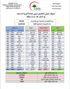 محلياتالصحة تعلن تسجيل 6536 اصابة جديدة بكورونا في عموم العراق قبل 5 سنوات 3 مشاهدات شارك صحة قد يهمك أيضا رياضة اتحاد الكرة ينفي ما تم تداوله بشأن عدنان درجال: شركات استثمار تحاول زج اسمه بمشاريع وهمية قبل 15 دقيقة 2 مشاهدات أقتصاد وزارة المالية تعلن المباشرة بإجراءات تمويل رواتب الموظفين قبل 37 دقيقة 4 مشاهدات محليات المالية توجه المصارف بالدوام يومي الجمعة والسبت لاستكمال صرف الرواتب.. وثيقة قبل 55 دقيقة 11 مشاهدات أمن شرطة الكرخ تُطيح بمبتز إلكتروني بكمين محكم في منطقة أبو دشير جنوبي بغداد قبل ساعة واحدة 8 مشاهدات عربي ودولي الجيش الإيراني يعلن تسلم سلاح استراتيجي لمواجهة أهداف بحرية وبرية وجوية قبل ساعة واحدة 9 مشاهدات