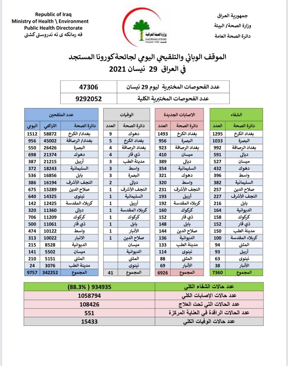 محلياتالصحة تعلن تسجيل 41 وفاة بكورونا و 7360 حالة شفاء من الفيروس قبل 5 سنوات 2 مشاهدات شارك قد يهمك أيضا أمن الداخلية: اعتقال 175 مخالفاً لشروط الإقامة من الجنسيات العربية والأجنبية في الرصافة قبل 33 دقيقة 6 مشاهدات أمن الداخلية بشأن مقطع فيديو عن دكة عشائرية بمنطقة العبيدي: الحادث يعود الى العام 2022 قبل 37 دقيقة 5 مشاهدات مع ياسر عامر فيتو ترامب… ودوخة الإطار! قبل 39 دقيقة 6 مشاهدات عربي ودولي الأركان الإيرانية: تصنيف الحرس الثوري “إرهابيًا” عمل عدائي وعواقبه ترتد على ساسة أوروبا قبل ساعة واحدة 7 مشاهدات سياسة البرلمان ينفي صدور قرار بمنع النواب السابقين من استعمال صالته في مطار بغداد قبل ساعة واحدة 10 مشاهدات