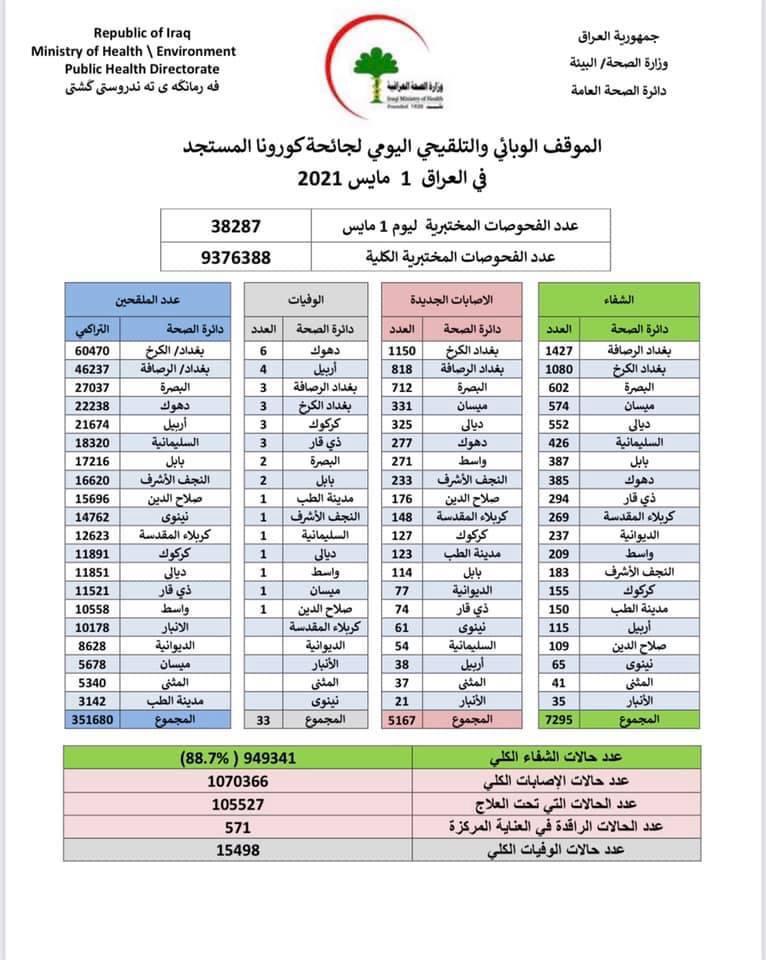 محلياتالصحة تعلن تسجيل 33 وفاة بكورونا و 7295 حالة شفاء من الفيروس قبل 5 سنوات 2 مشاهدات شارك قد يهمك أيضا أمن اعتقال تاجر دولي بحوزته مادة الحشيشة المخدرة في السليمانية قبل 3 ساعات 8 مشاهدات محليات التربية توجّه بإلغاء الوكالات الخاصة في المعاملات التربوية قبل 3 ساعات 11 مشاهدات محليات توقف مؤقت للحركة الملاحية في مطار اربيل الدولي بسبب الضباب الكثيف قبل 4 ساعات 9 مشاهدات أقتصاد رويترز: العقود الآجلة لخام برنت ترتفع إلى 70.71 دولار للبرميل عند التسوية قبل 4 ساعات 7 مشاهدات أمن الداخلية: اعتقال 175 مخالفاً لشروط الإقامة من الجنسيات العربية والأجنبية في الرصافة قبل 5 ساعات 9 مشاهدات