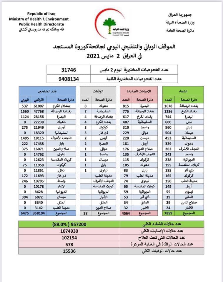 محلياتالصحة تعلن تسجيل 4564 اصابة جديدة بكورونا في عموم العراق قبل 5 سنوات 2 مشاهدات شارك قد يهمك أيضا أمن اعتقال تاجر دولي بحوزته مادة الحشيشة المخدرة في السليمانية قبل 6 ساعات 8 مشاهدات محليات التربية توجّه بإلغاء الوكالات الخاصة في المعاملات التربوية قبل 6 ساعات 17 مشاهدات محليات توقف مؤقت للحركة الملاحية في مطار اربيل الدولي بسبب الضباب الكثيف قبل 7 ساعات 9 مشاهدات أقتصاد رويترز: العقود الآجلة لخام برنت ترتفع إلى 70.71 دولار للبرميل عند التسوية قبل 7 ساعات 9 مشاهدات أمن الداخلية: اعتقال 175 مخالفاً لشروط الإقامة من الجنسيات العربية والأجنبية في الرصافة قبل 8 ساعات 9 مشاهدات